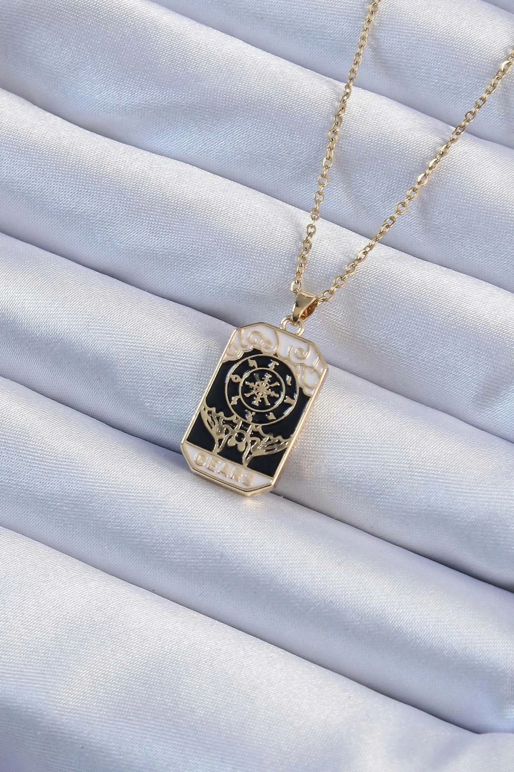 ® 316L Çelik Zincir Altın Renk İşlemeli Siyah Mineli Tarot Kolye