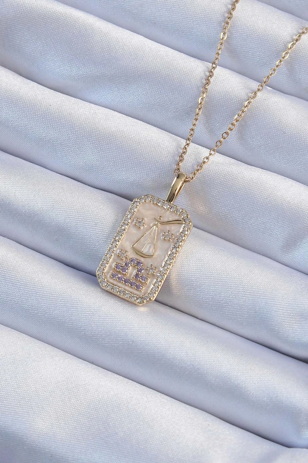 ® 316L Çelik Zincir Altın Renk Lila Zirkon Taşlı Tarot Kolye