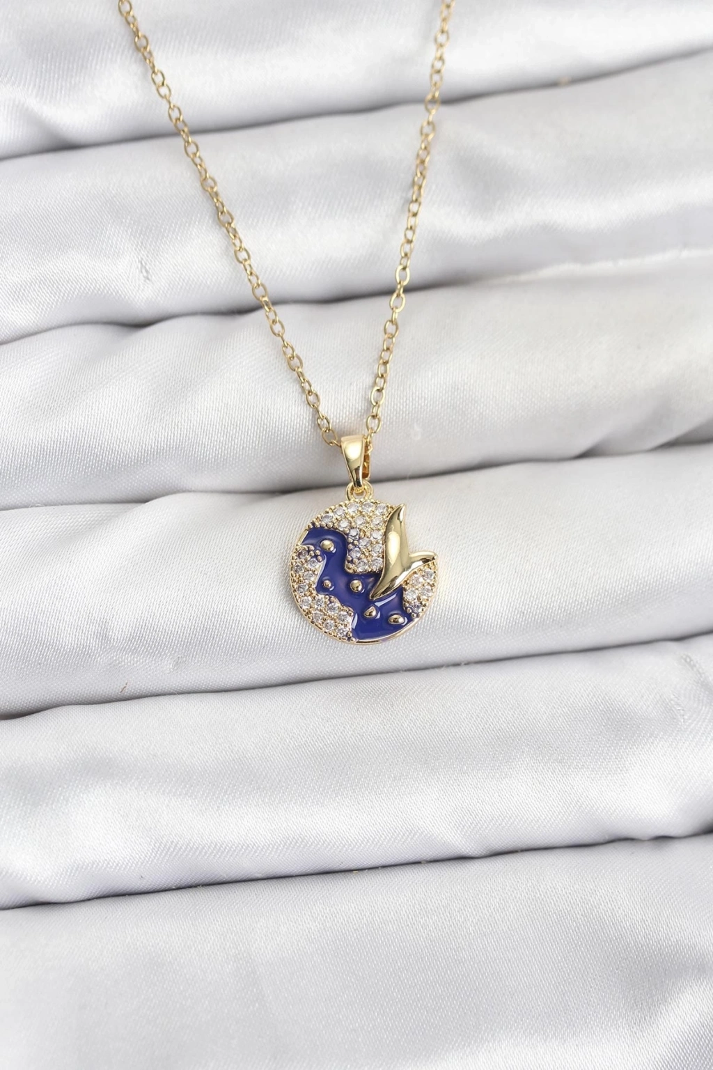 ® 316L Çelik Zincir Gold Renk Gece Model Zirkon Taşlı Kadın Kolye