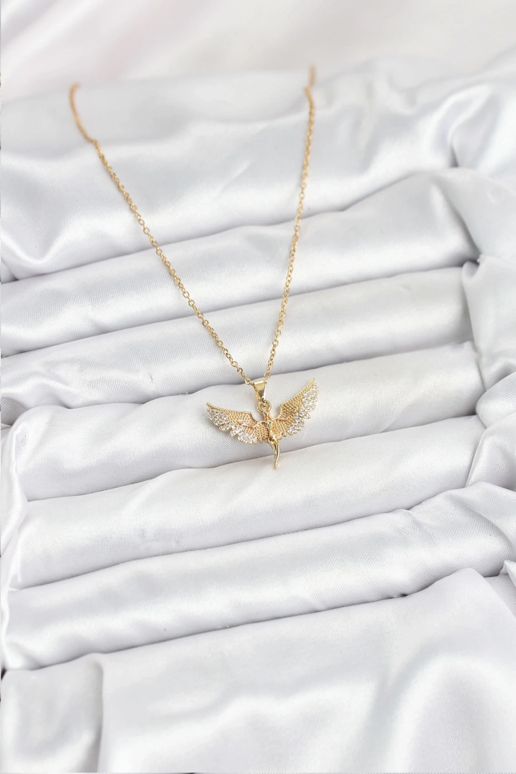 ® 316L Çelik Zincir Gold Renk Melek Model Kadın Kolye