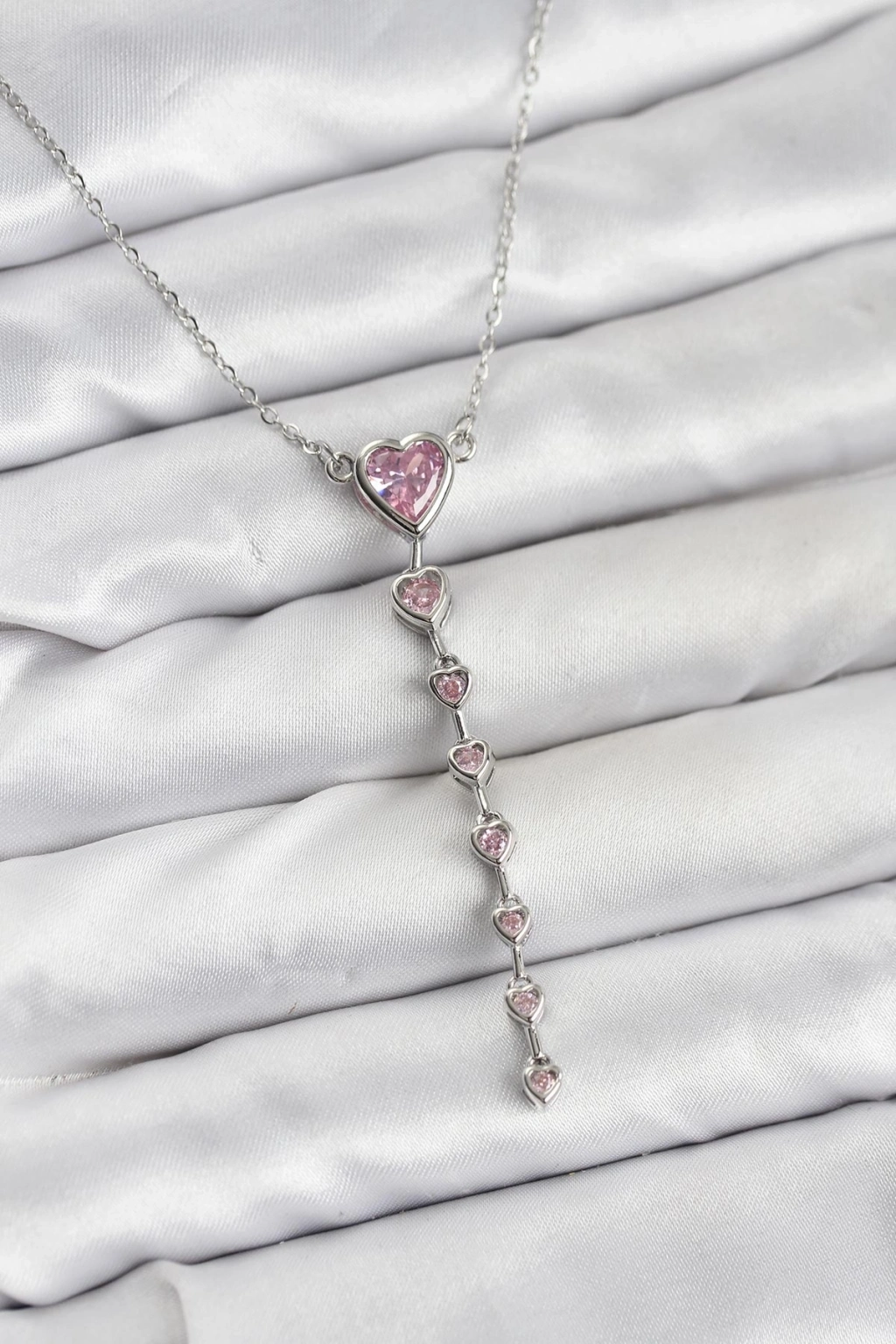 ® 316L Çelik Zincir Gümüş Renk Pembe Kalp Kadın Kolye