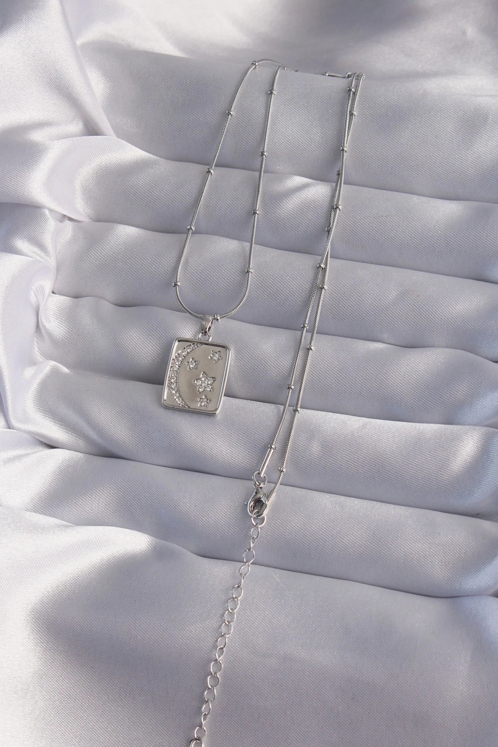 ® 316L Çelik Zincir Gümüş Renk Zirkon Taşlı Ay Yıldız Figürlü Tarot Kolye