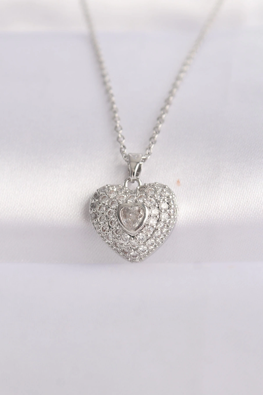 ® 316L Çelik Zincir Gümüş Renk Zirkon Taşlı Kalp Kolye