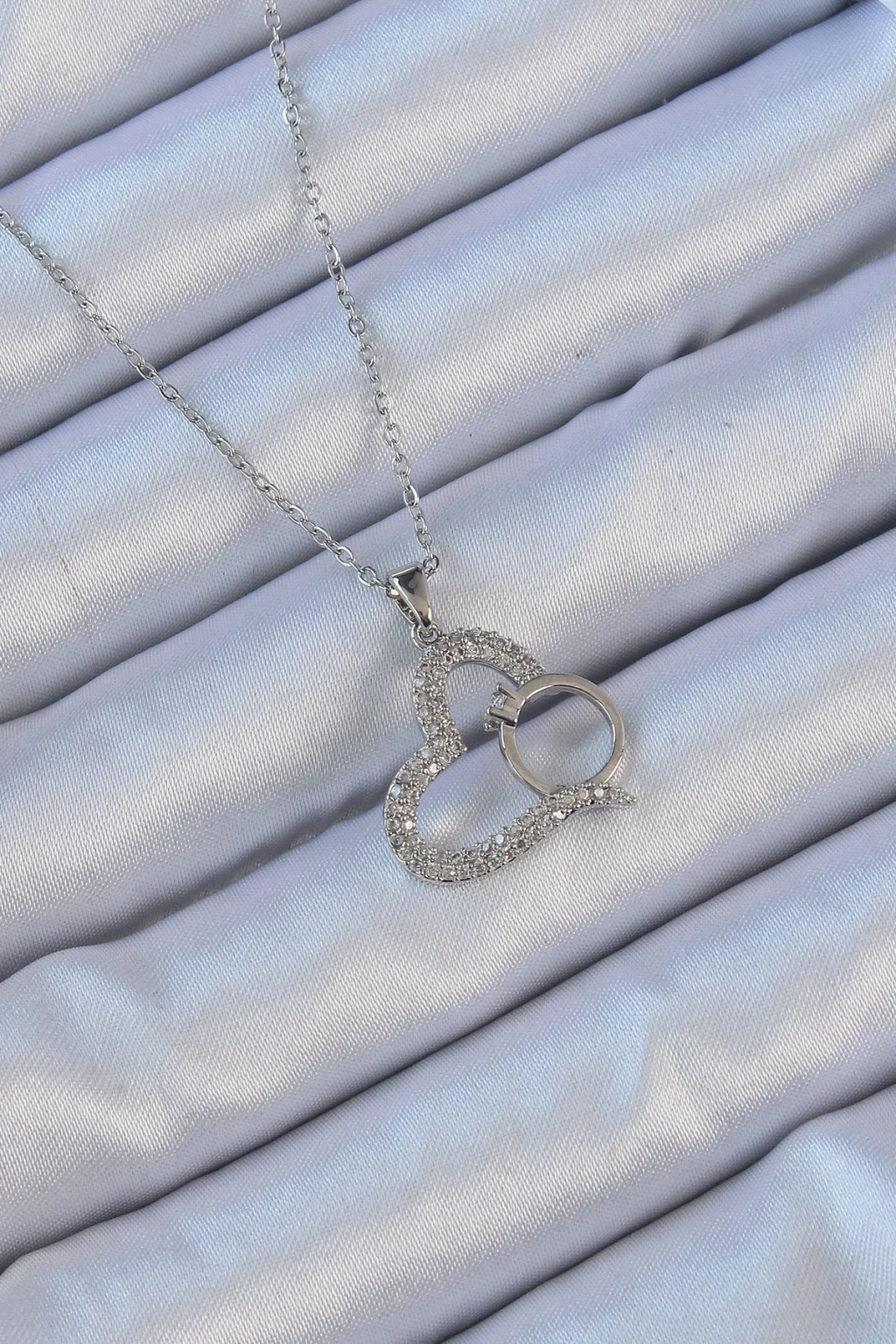® 316L Çelik Zincir Gümüş Renk Zirkon Taşlı Yüzüklü Kalp Kolye