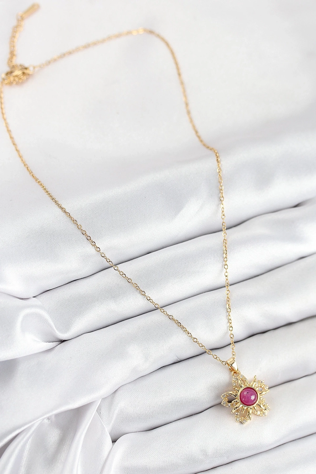® 316L Çelik Zirkon Taşlı Döner Güneş Model Gold Renk Kadın Kolye