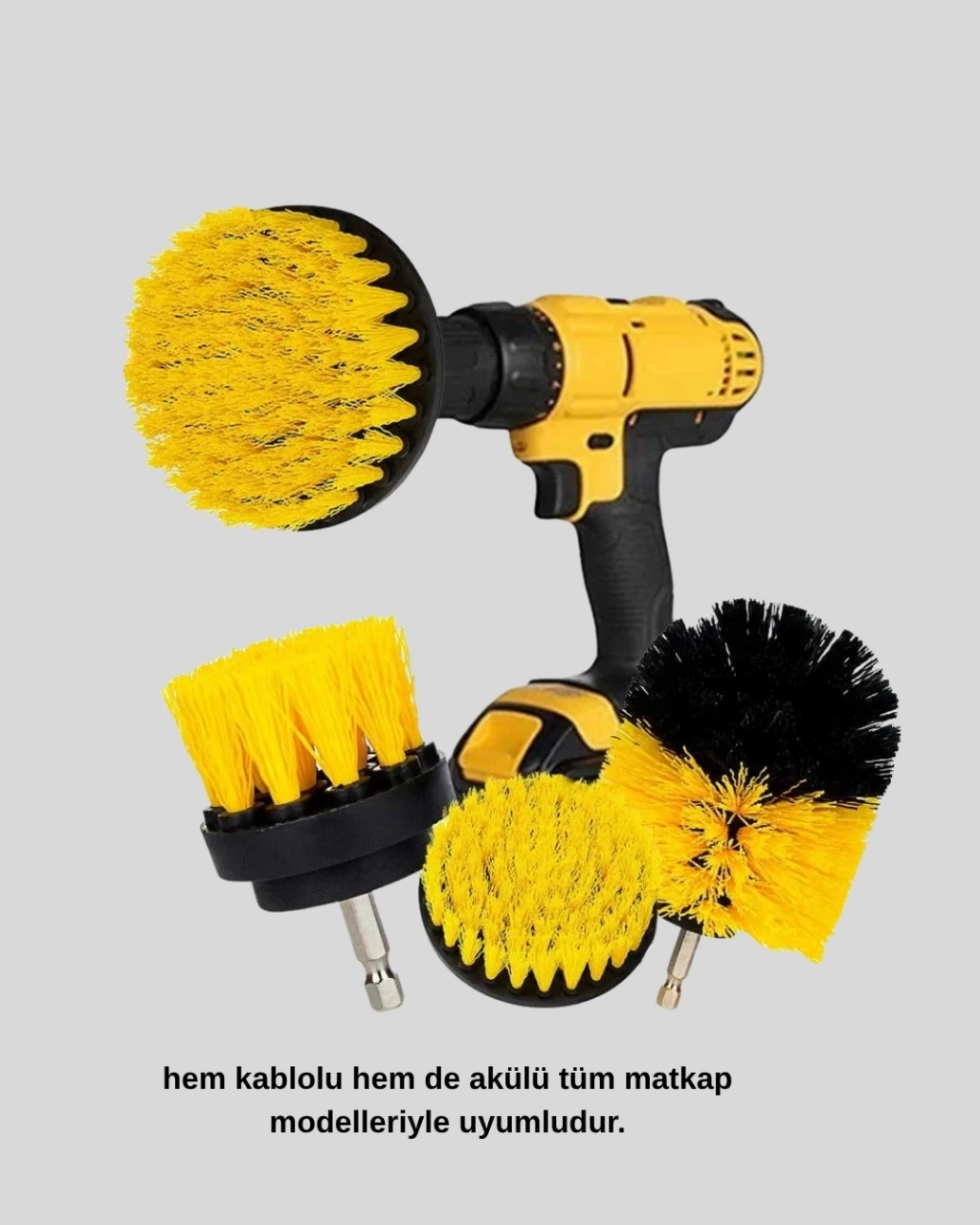Ev temizliğinde profesyonel sonuçlar almak artık çok daha kolay!Bu 3’lü matkap ucu fırça seti, matkabınızın gücünü etkili bir temizlik performansına dönüştürür.Kablolu veya akülü tüm matkap modelleriyle uyumlu olan set, dar alanlara ve zorlu lekelerin olduğu yüzeylere kolayca ulaşarak derinlemesine temizlik sağlar.Dayanıklı kıllı yapısı, yüzeye zarar vermeden güçlü bir ovalama etkisi sunar.Banyo fayansları, lavabo, küvet, mutfak tezgahı, ocak, fırın, jant, mermer, seramik, halı ve zemin gibi birçok alanda kullanılabilir.Elle yapılan temizliklerde ulaşılması zor bölgeleri kolayca temizlemenizi sağlayarak zaman ve emek tasarrufu sunar.Set içerisinde farklı boyutlarda 3 adet fırça başlığı bulunur:Küçük fırça: köşe ve dar alanlar için idealdir.Orta boy fırça: lavabo, fayans arası ve yüzey temizliği için uygundur.Geniş fırça: zemin, araç jantı ve geniş yüzeylerde yüksek verim sağlar.Yüksek devirde dönen matkap gücü sayesinde, en inatçı kirler bile saniyeler içinde çıkar.Ev temizliğinde, araç bakımında veya dış mekan yüzeylerinde hijyenik bir sonuç elde etmek isteyen herkes için mükemmel bir yardımcıdır.Dayanıklı malzeme yapısı sayesinde uzun süre güvenle kullanılabilir.