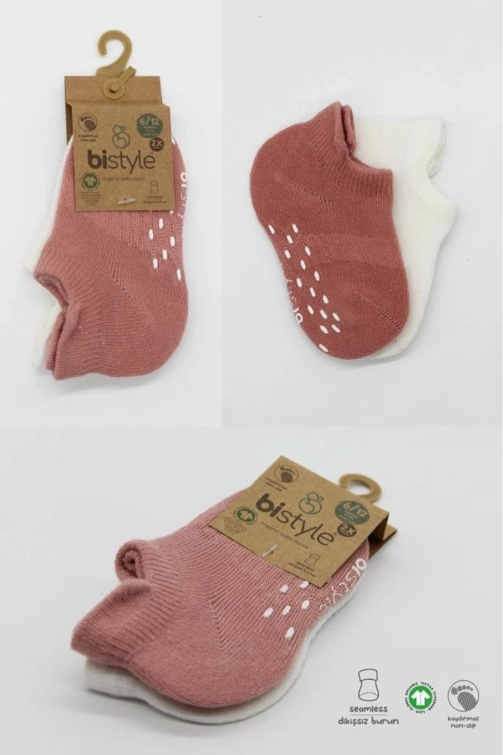 ® 2'Li Sneakers Kaymaz Colours Penye Çorap 20104 Ekru Pudra