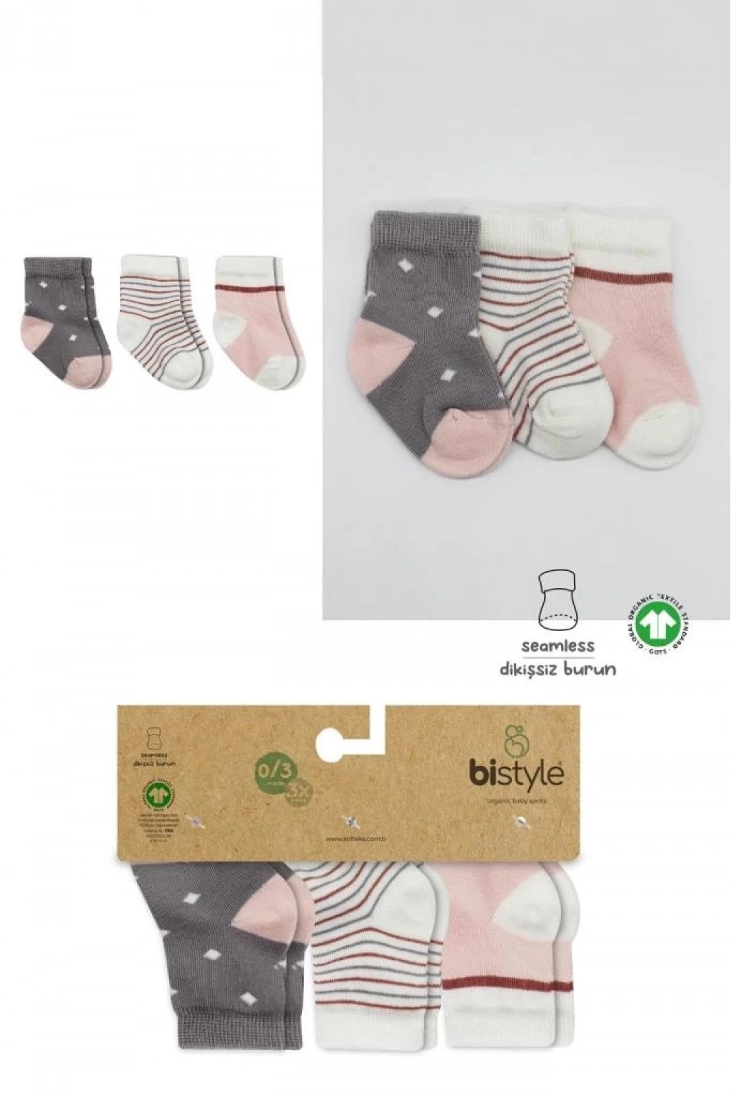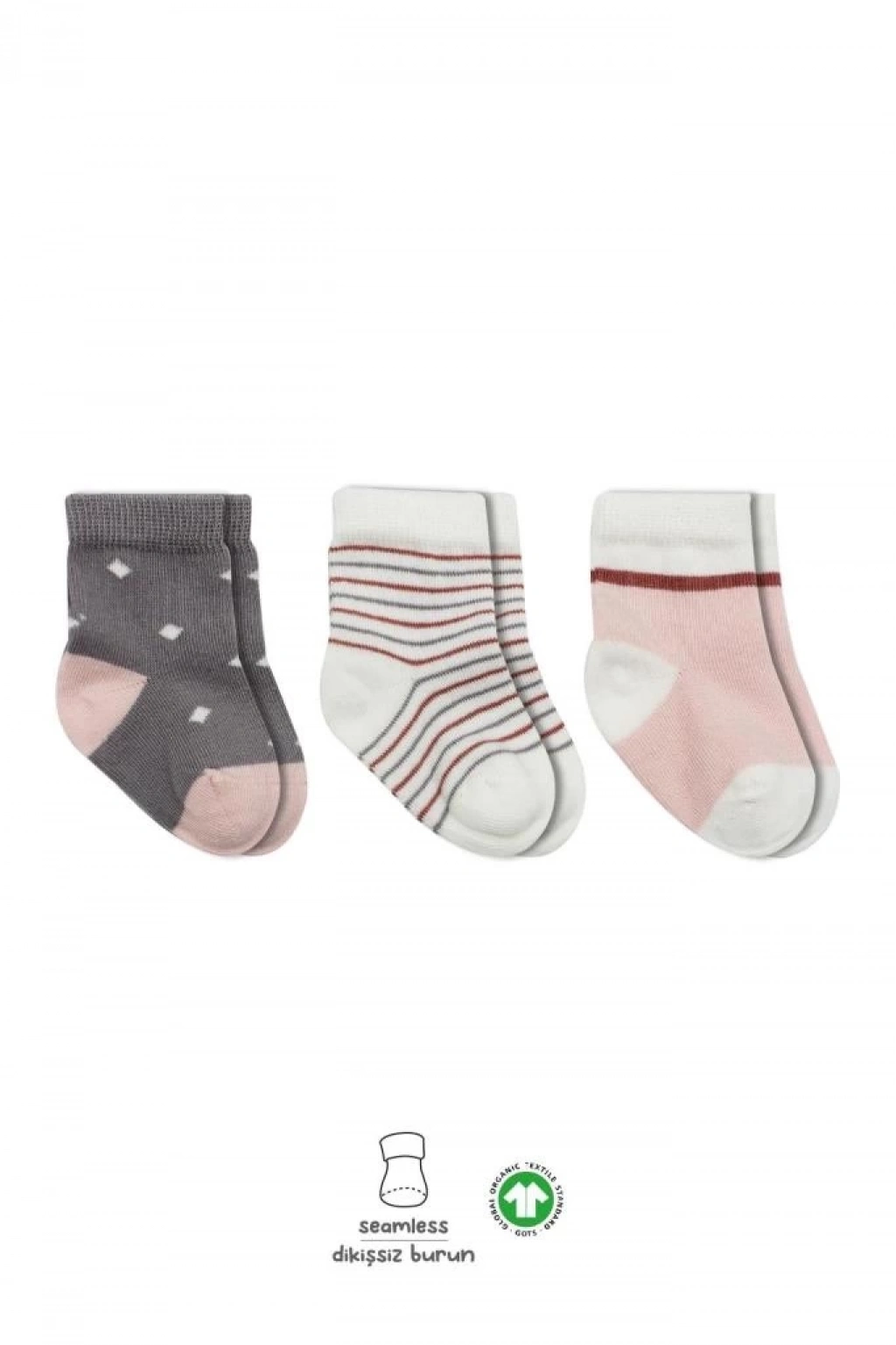 ® 3'Lü Penye Kız Soket Çorap 10112 Gri