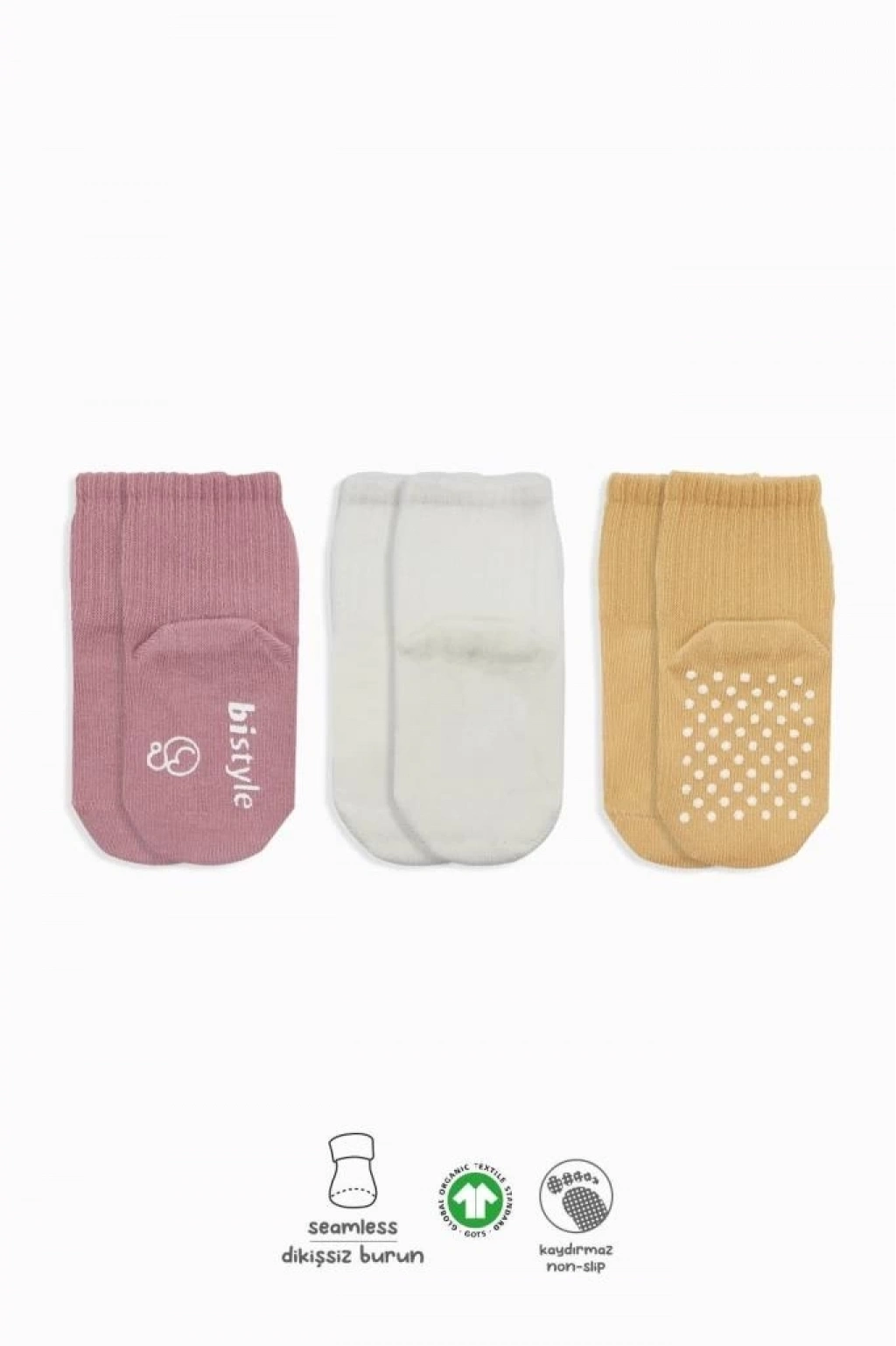 ® Basic Kaymaz Penye Soket Çorap 3'Lü BS10107 Pudra Ekru Somon