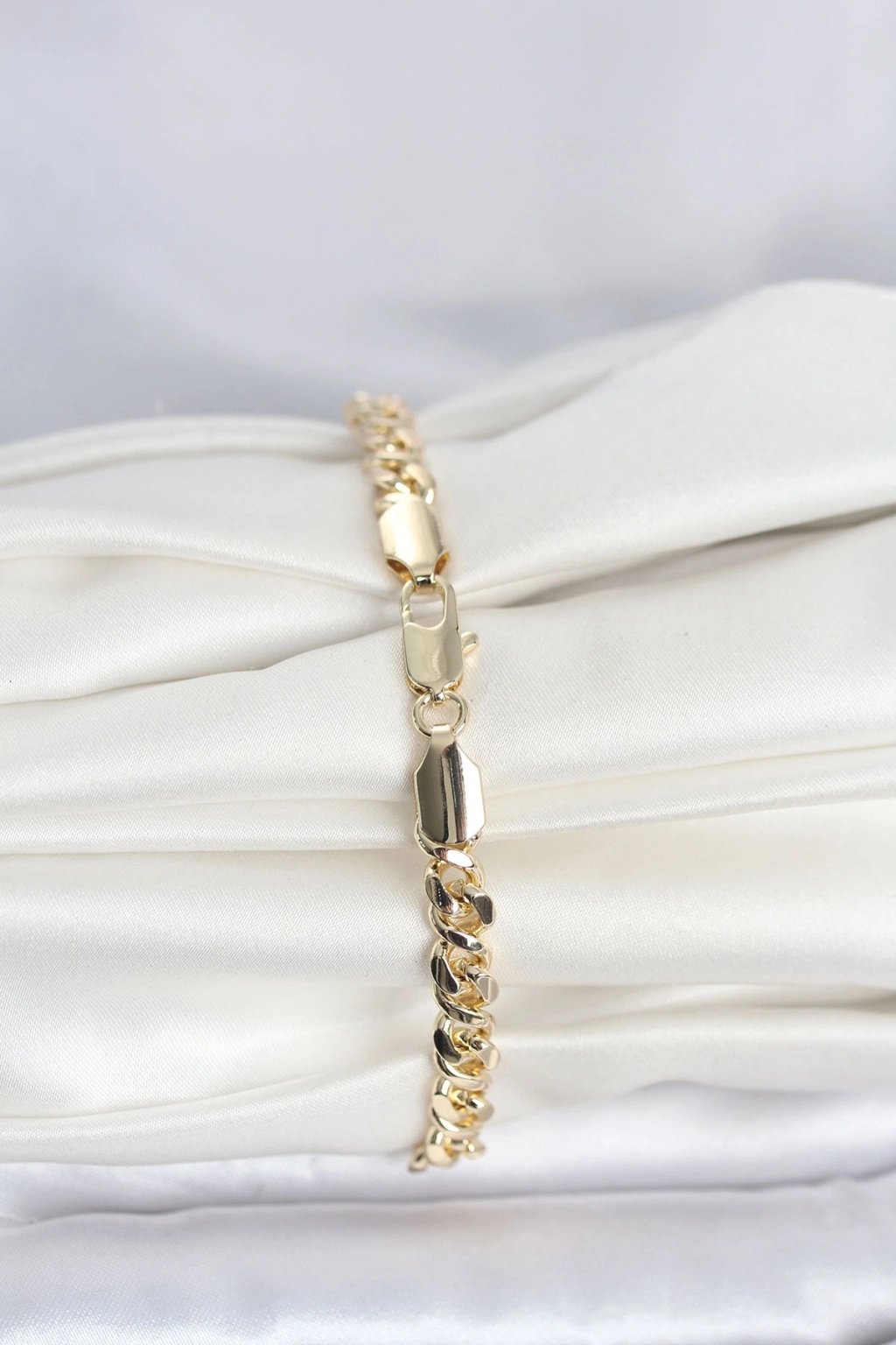 ® CM 14K Gold Renk Yassı Zincir Model Kadın Bileklik