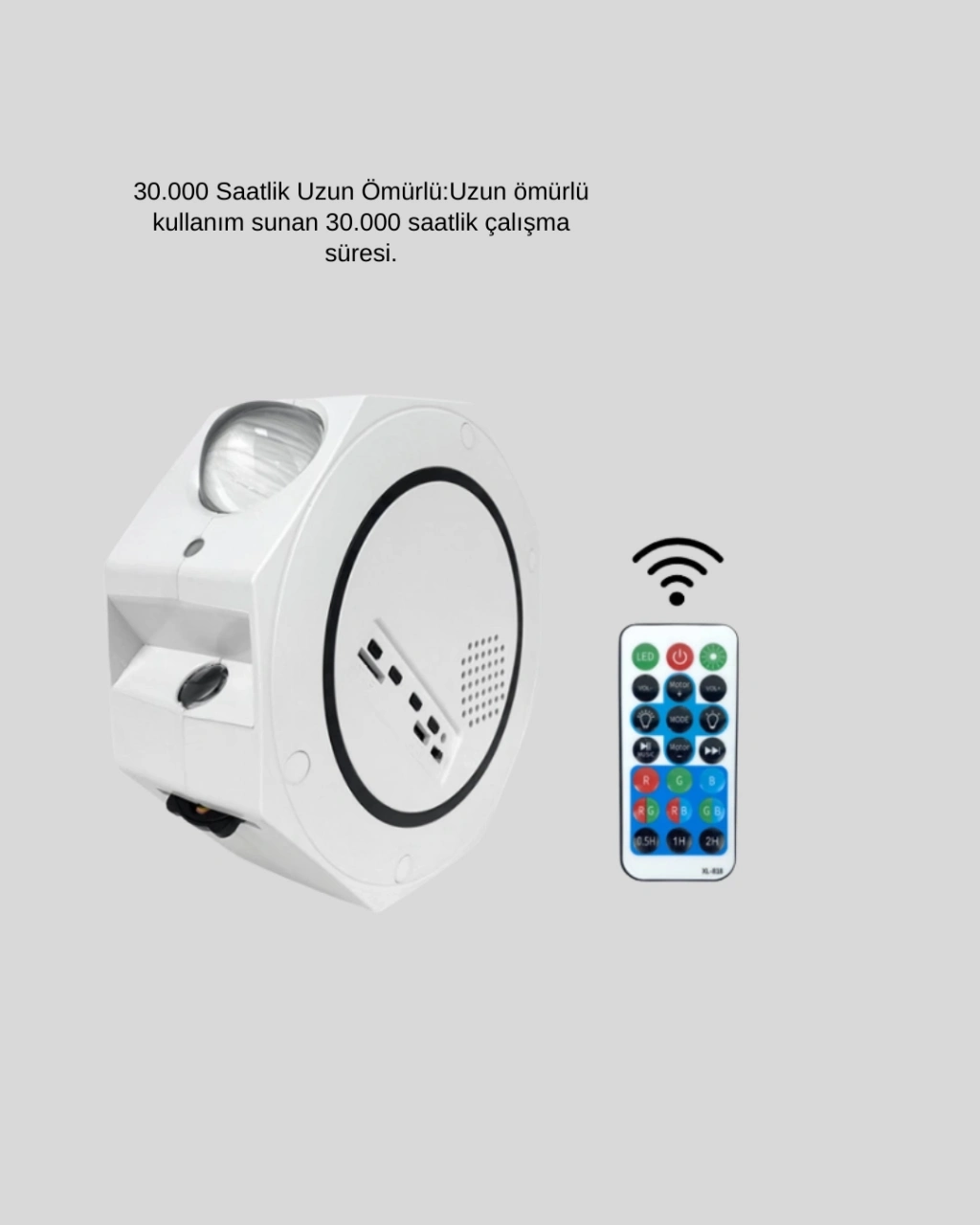 360° ayarlanabilir projeksiyon açısına sahip bu yıldızlı gece lambası, her odada etkileyici bir gökyüzü deneyimi sunar. Işığın yönünü serbestçe ayarlayarak istediğiniz yüzeye net ve geniş bir projeksiyon elde edebilirsiniz. Gerçekçi yıldız ve galaksi efektleri, bulunduğunuz alanı sakin ve huzurlu bir atmosfere dönüştürür.Çeşitli aydınlatma modları, farklı kullanım senaryoları için esneklik sağlar. Yıldızlı gece, dalgalı okyanus veya yumuşak orman efektleri ile ortamın enerjisini dilediğiniz gibi ayarlayabilirsiniz. Bu özellik, ürünü hem dekoratif hem de fonksiyonel hale getirir.Uzaktan kumanda desteği sayesinde ışık ayarları kolayca kontrol edilir. Zamanlayıcı fonksiyonu, özellikle uyku öncesi kullanımda büyük avantaj sağlar. Işıkların belirlenen sürede kapanması, rahat ve kesintisiz bir uyku ortamı oluşturur.Taşınabilir ve hafif yapısı sayesinde farklı alanlarda rahatlıkla kullanılabilir. Film geceleri, oyun seansları veya rahatlatıcı bir akşam için ideal bir atmosfer sunar. Günlük stresinizi azaltmak ve yaşam alanınıza farklı bir dokunuş katmak için mükemmel bir seçenektir.