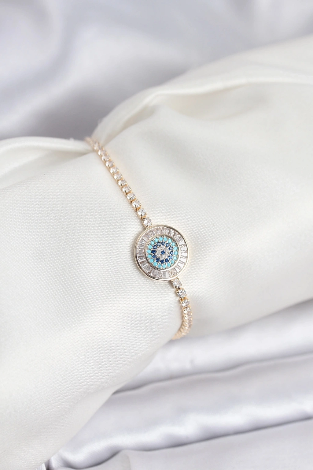 ® Gold Renk Nazar Model Zirkon Taşlı Asansörlü Su Yolu Bileklik