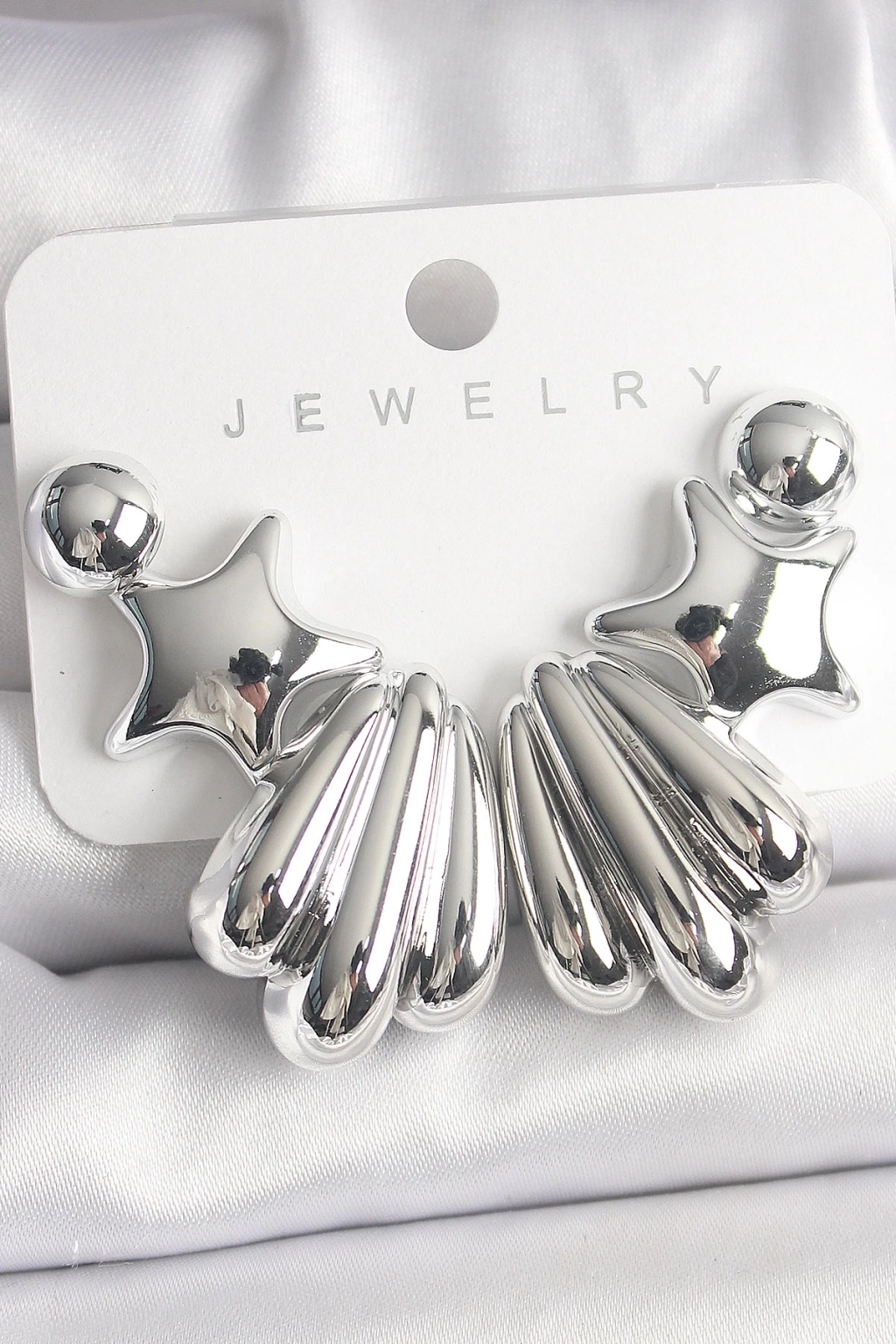 ® Gümüş Renk Yıldız Deniz Kabuğu Model CCB Plastik Kadın Küpe Seti