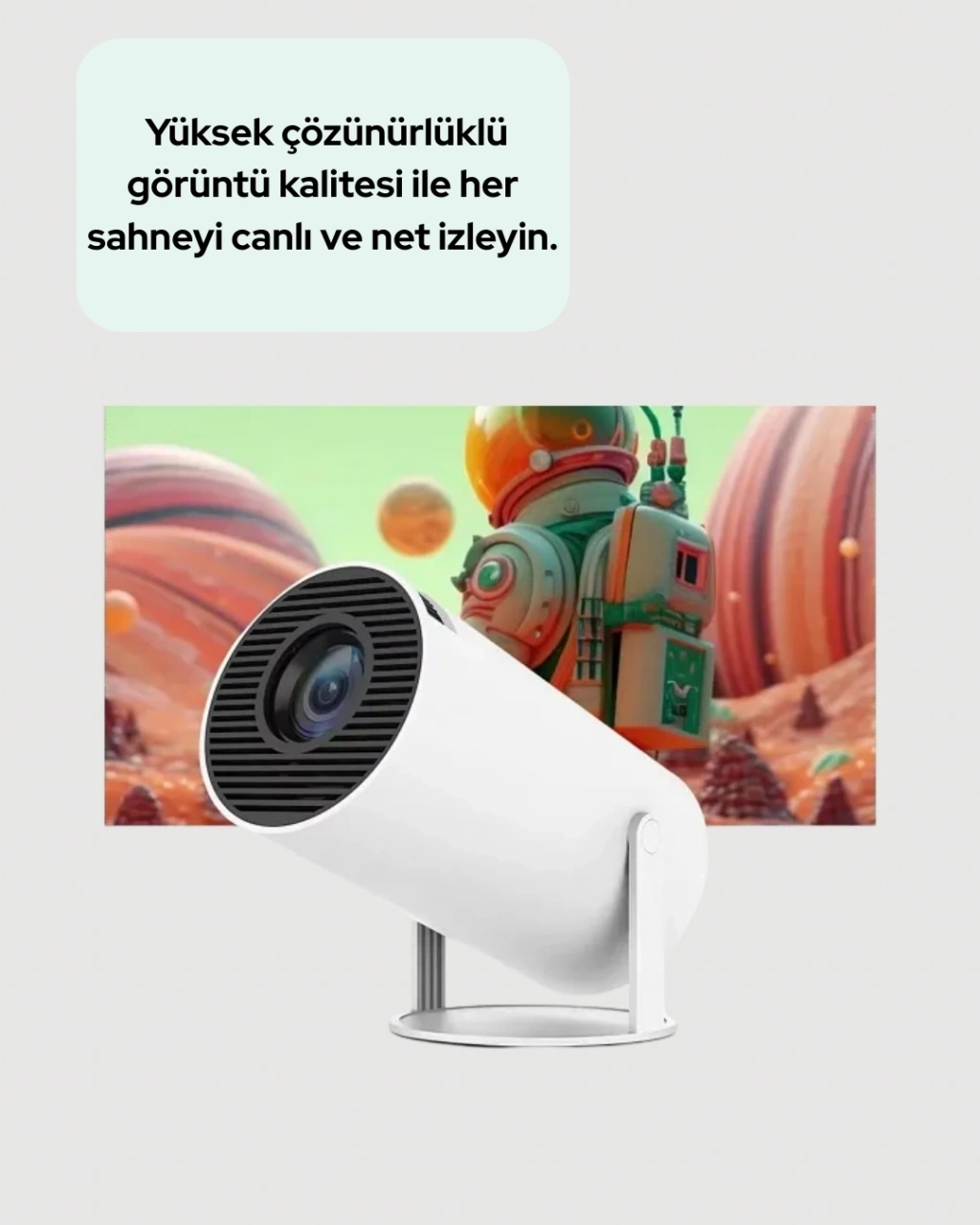 Bu cihaz, 130 inç geniş ekran desteği ile sinema keyfini ev ortamına taşır. Full HD çözünürlük ve 4K uyumluluk sayesinde filmler, diziler ve sunumlar net ve ayrıntılı şekilde görüntülenir. 160 ANSI lümen parlaklık, farklı ışık koşullarında net görüntü sağlar. HDMI ve USB girişleri ile oyun konsolu, bilgisayar veya medya oynatıcı bağlanabilir. Kablosuz bağlantı özelliği, mobil cihazlardan kolay içerik aktarımı yapma imkânı verir. 5000 saat ampul ömrü ile uzun süreli kullanım sağlar.