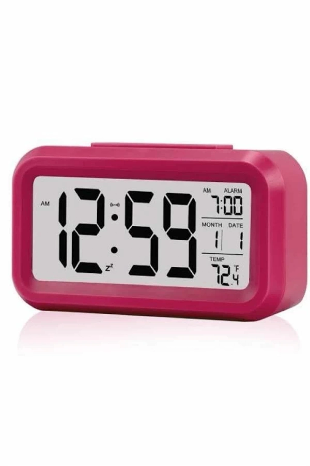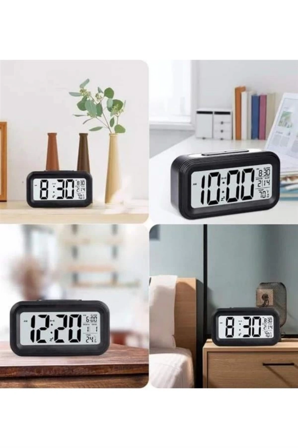 • Şıklığı ve fonksiyonelliği bir arada sunan bu dijital masa saati, her ortamda rahatlıkla kullanılabilecek pratik bir çözümdür. Büyük LCD ekranı sayesinde saati, tarihi ve ortam sıcaklığını kolayca görüntüleyebilirsiniz. Kararmış ortamlarda bile ekranın kendiliğinden aydınlanması, göz yormadan saatin görünmesini sağlar. Ayrıca, ışık 6 saniye sonra otomatik olarak kapanarak enerji tasarrufu sağlarken, sizi rahatsız etmez.Alarm fonksiyonu, sabahları zamanında uyanmanıza yardımcı olur, böylece güne enerjik bir