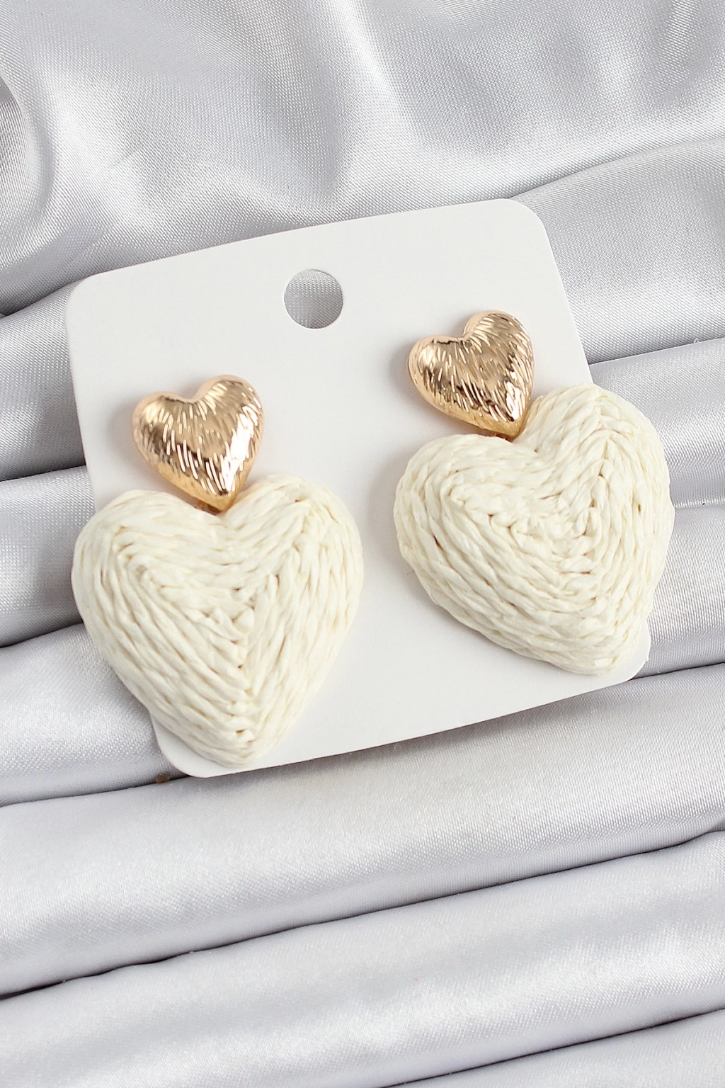 ® Krem Kalp Figürlü Hasır Örgü Model Gold Renk Kadın Küpe