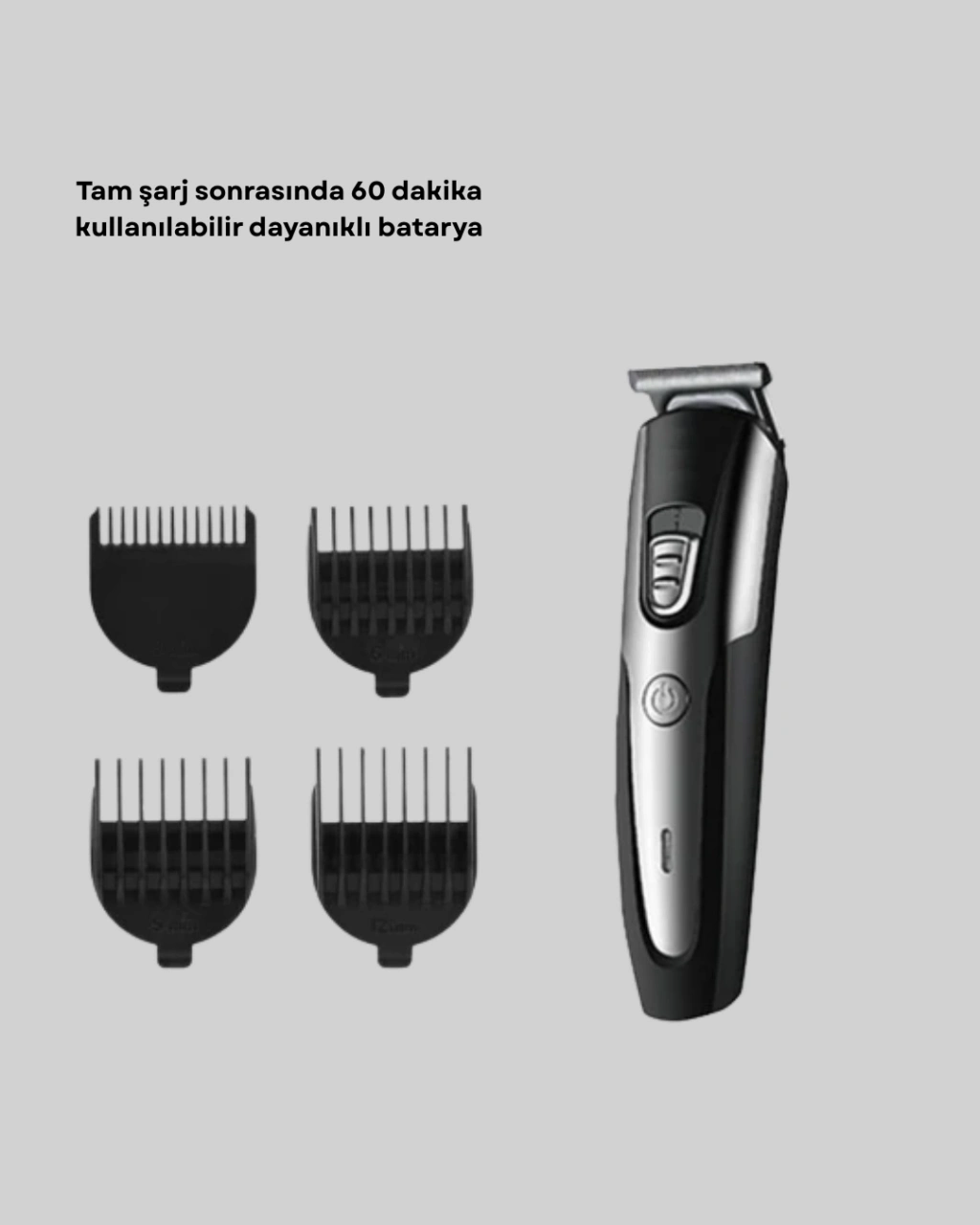 Kuaför tipi şarjlı saç ve sakal kesme makinesi, yüksek performans gerektiren yoğun kullanım için idealdir. Güçlü motor sistemi, farklı saç tiplerinde bile takılmadan akıcı bir kesim yapar. Profesyonel sonuçlar sunan yapısı ile kuaförler, berberler ve kaliteli bakım isteyen bireysel kullanıcılar için mükemmel bir tercihtir.Ergonomik gövdesi elin kavrama yapısına uyum sağlar. Sessiz çalışma teknolojisiyle rahatsız edici titreşimleri minimuma indirir. Kablosuz kullanım özelliği sayesinde tıraş sırasında özgürce hareket edilebilir. Bataryası tam doluyken 30–60 dakika boyunca kesintisiz kullanım sağlar.Cihaz 3, 6, 9 ve 12 mm taraklarla birlikte gelir. Bu taraklar saç ve sakalı eşit uzunlukta kesmek için özel olarak geliştirilmiştir. Ense, favori ve sakal kontürlerinde hassas kesim sunarak profesyonel görünüm sağlar.Islak kullanım özelliği duş sırasında bile kullanım imkânı tanır. Otomatik kapanma fonksiyonu hem güvenliği artırır hem enerji tasarrufu sağlar.Lazer epilasyon öncesi kısaltma için de ideal bir üründür. Kılları istediğiniz seviyeye indirerek işlem öncesinde daha pürüzsüz bir yüzey elde etmenizi sağlar.Kolay temizlenebilir yapısı cihazın bakımını hızlı ve pratik hâle getirir. Hem profesyonel kullanım hem ev için ideal uzun ömürlü bir tıraş makinesidir.