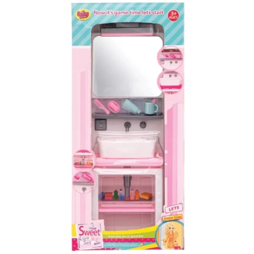 Gerçekçi lavabo ve ayna tasarımı ile minikler, hayali oyunlar oynayarak eğlenceli vakit geçirebilirler.