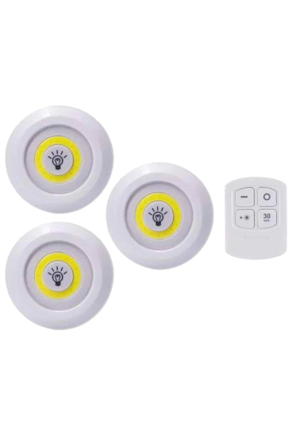 Işık rengi :Beyaz (gün ışığı)Işık pil tipi: 3 x aaa pil (dahil değildir)Uzaktan kumanda pili tipi: 2 x aaa pil (dahil değildir)Led Işık Kablosuz Uzaktan Kumandalı Dolap Içi Led Ampul Seti 3lü Set Gece Lambası Spot LambaUzaktan Kumandalı 3 Lü Ayarlanabilir Spot LED Işık Kablosuz Lamba Kumandalı Işık Ayarlanabilir 3lü Led IşıkPilli Süre Ayarlı · Çok şık ve kullanışlı modern bir üründür.Kaliteli malzemeden hoş bir görünüme sahiptir.Yapısı ile pratik kolay kullanım sunuyor. ·Temizliği de çok kolay olan sıcak görünümü ile şıklık katacakDekoratif · Estetik Ve kullanışlı · Şık tasarım · Kanserojen madde içermez · Kaliteli ham maddeden üretilmiştir.Led light with remote control set of 3 · Işık derecesini ayarlayabilirsinizYanma süresini ayarlayabilirsinizUzaktan kumanda ile kontrol edilir · Her türlü zemine kolay montaj edilir ·Güçlü led ışığa sahiptir · 3 lü set olarak gönderilirIşık pil tipi: 3 x aaa pil (dahil değildir)Uzaktan kumanda pili tipi: 2 x aaa pil (dahil değildir)Işık rengi :Beyaz (gün ışığı)Gövde malzemesi :Sert plastikAmpul ömrü: 100.000 saatKullanım Alanları: Avcılık, kamp, ev, okul, araba, otel, restoranÜrün Boyutlar: 9 cm - 2 cm