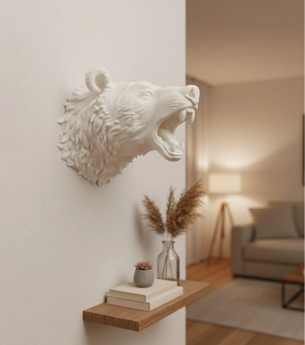 Beyaz 3D ayı başı duvar heykeli, dekorasyonuna modern, etkileyici ve güçlü bir dokunuş eklemek isteyenler için özel olarak tasarlanmış bir üründür. 25x19 cm ölçülerindeki bu dekoratif figür, beyaz renginin sadeliği ve şıklığı ile hem modern hem de minimal dekorasyon tarzlarına mükemmel uyum sağlar. Ürünün detaylı yüz hatları dikkat çekici bir gerçekçilik sunarken, 3 boyutlu kabartı yapısı duvarda güçlü bir gölge etkisi oluşturur.Hafif ve sağlam yapısı sayesinde kolayca duvara monte edilebilir. Odanın odak noktası olması için tek başına kullanılabileceği gibi, galeriler, çalışma odaları, genç odaları, ofisler veya tasarım ağırlıklı ortamlar için de harika bir tamamlayıcıdır. Ayı figürü; güç, cesaret ve koruyucu enerji ile ilişkilendirildiği için manevi anlamda bir sembol arayan kullanıcıların da ilk tercihleri arasında yer alır.Estetik tasarımı sayesinde fotoğraf çekimleri, video çekim alanları, stüdyo dekorasyonları veya mağaza vitrinlerinde de çok şık bir görünüm sağlar. Beyaz rengi, her renkteki duvar ile uyumlu olduğu için dekorasyon seçeneklerini genişletir.Ayrıca özel günler için benzersiz bir hediye seçeneğidir. Şık, farklı ve anlamı olan dekoratif objeler sevenler için ideal bir alternatiftir.