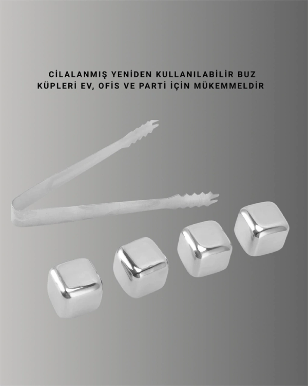 ® Paslanmaz Çelikten Üretilmiş Metal Buz Küpü Seti ve Buz Klipsi
