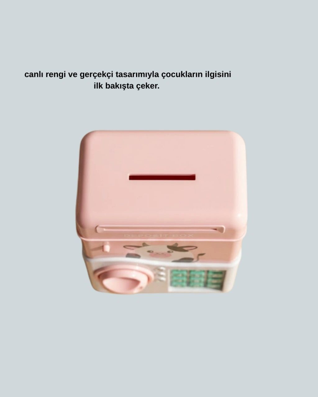 Pembe rengiyle neşeli ve dikkat çekici bir tasarıma sahip olan bu ATM görünümlü elektronik şifreli kumbara, çocukların para biriktirmeyi severek öğrenmesi için özel olarak geliştirilmiştir. Elektronik şifre sistemi sayesinde çocuklar kendi şifrelerini belirleyebilir ve paralarını güvenle saklayabilir. Bu özellik, erken yaşta güvenli para saklama alışkanlığı kazandırır.Gerçek bir ATM mantığıyla çalışan kumbara, bozuk ve kâğıt paraları kabul eder. Otomatik para girişi, kâğıt parayı hazneye yaklaştırdığınız anda devreye girerek parayı içeri çeker. Bu detay, çocuklar için oldukça eğlenceli ve öğretici bir deneyim sunar. Işıklı ve sesli efektler, her tuş basımında aktif hale gelerek kullanım keyfini artırır.Pembe ATM kasa tasarımı, çocuk odalarına sıcak ve eğlenceli bir hava katar. Geniş iç hacmi sayesinde uzun süre dolmadan kullanılabilir. Dayanıklı ABS plastikten üretilmiş olması, ürünü güvenli ve uzun ömürlü hale getirir.Eğitici ve eğlenceli yapısıyla bu kumbara; doğum günleri, bayramlar ve karne dönemleri için ideal bir hediye alternatifidir. Hem çocukları mutlu eder hem de tasarruf bilinci kazandırır.