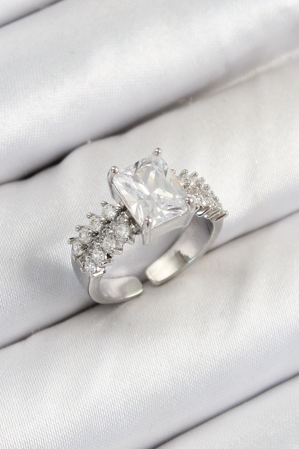 ® Pirinç Büyük Zirkon Taşlı Model Gümüş Renk Kadın Yüzük