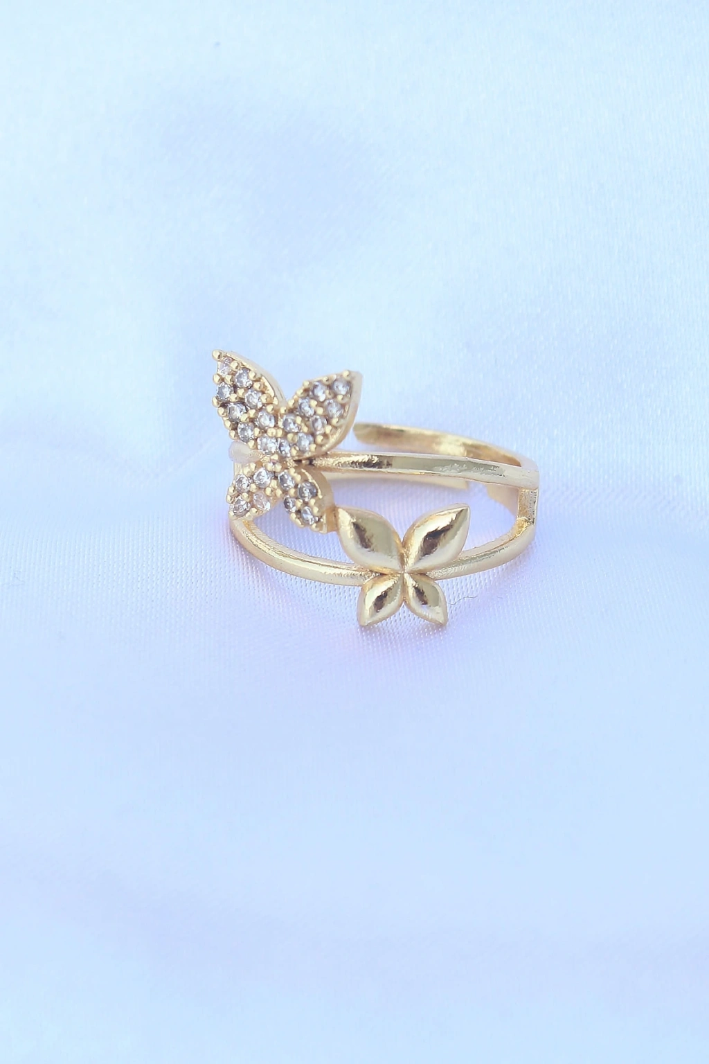 ® Pirinç Gold Renk Ayarlanabilir Zirkon Taşlı Kelebek Yüzük