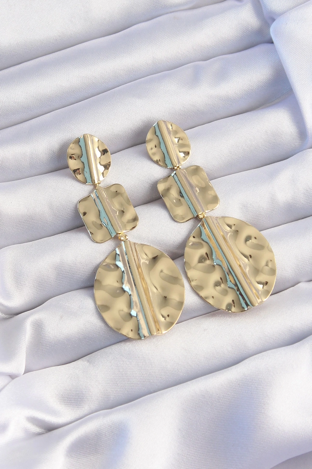 ® Pirinç Gold Renk Geometrik Ezme Plaka Küpe