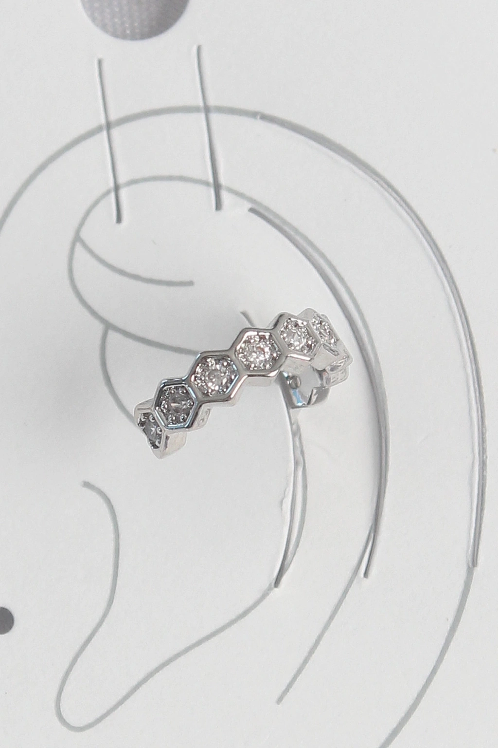 ® Pirinç Gümüş Renk Bal Peteği Model Zirkon Taşlı Kadın Kıkırdak Küpe