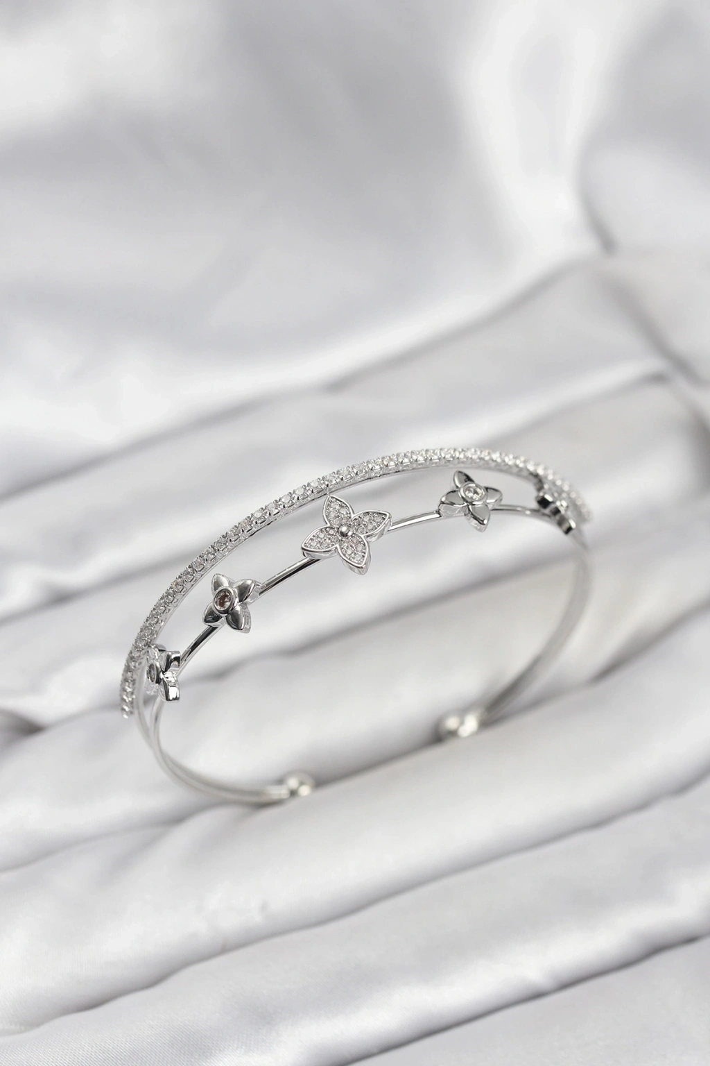 ® Pirinç Gümüş Renk Çiçek Model Kadın Bileklik