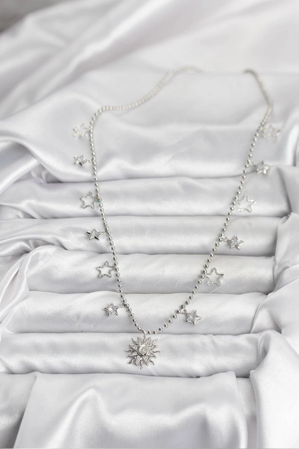 ® Pirinç Gümüş Renk Güneş Model Kadın Kolye