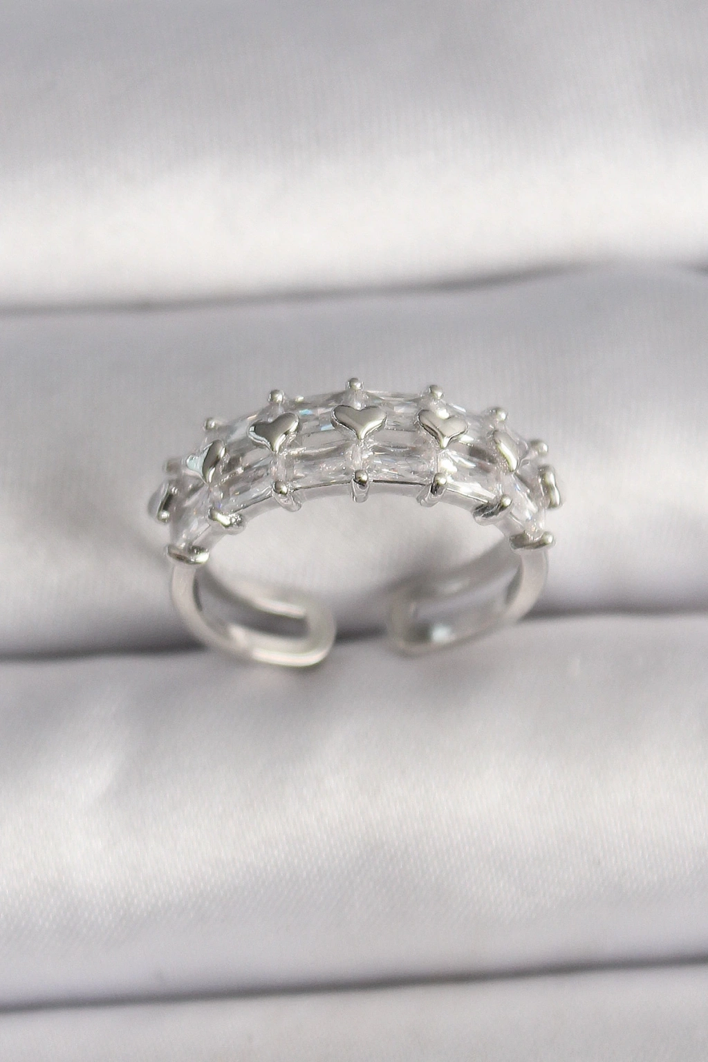 ® Pirinç Gümüş Renk Zirkon Taşlı Ayarlanabilir Yüzük