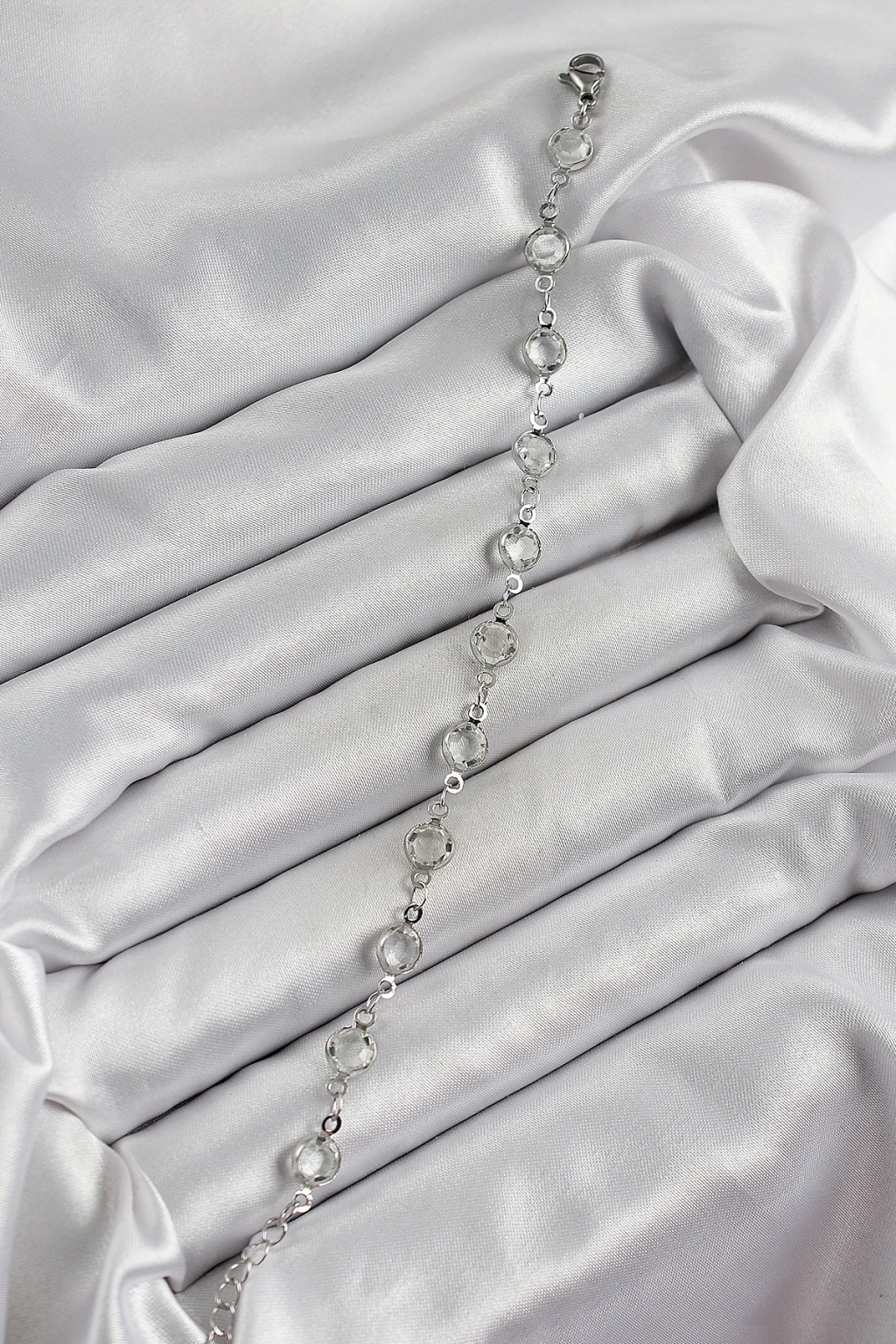 ® Pirinç Gümüş Renk Zirkon Taşlı Bileklik