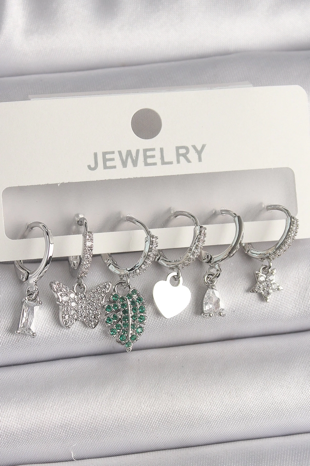 ® Pirinç Gümüş Renk Zirkon Taşlı Çoklu Figür Kadın Küpe Seti