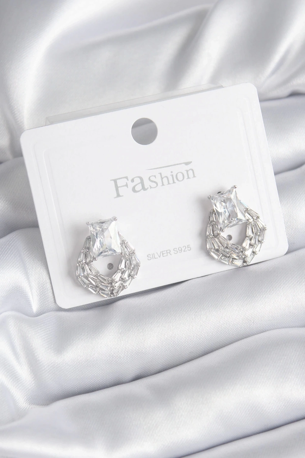 ® Pirinç Gümüş Renk Zirkon Taşlı Kadın Küpe