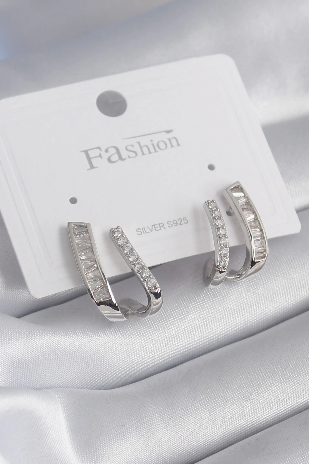 ® Pirinç Gümüş Renk Zirkon Taşlı Kadın Küpe