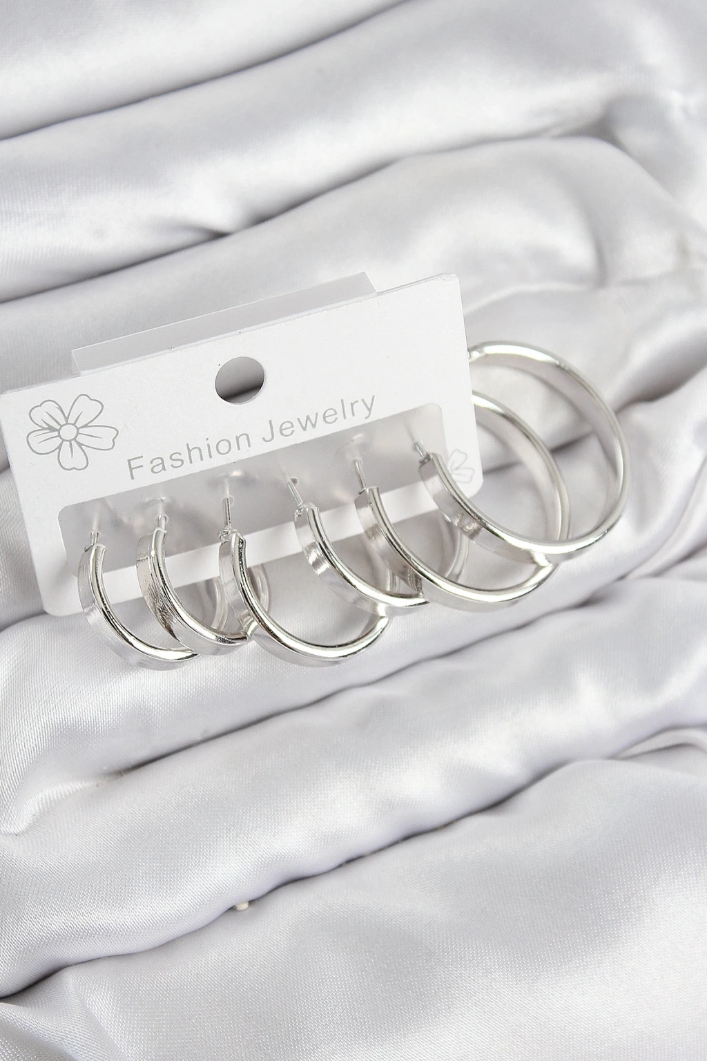 ® Pirinç Halka Model Gümüş Renk Kadın Set Küpe