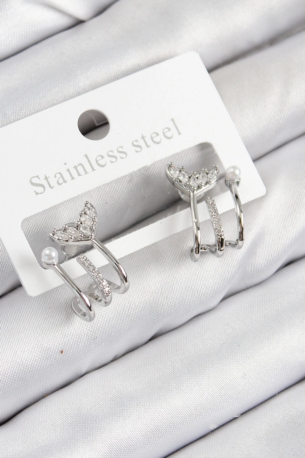 ® Pirinç Zirkon Taşlı İnci Detaylı Balık Kuyruğu Model Gümüş Renk Kadın Küpe