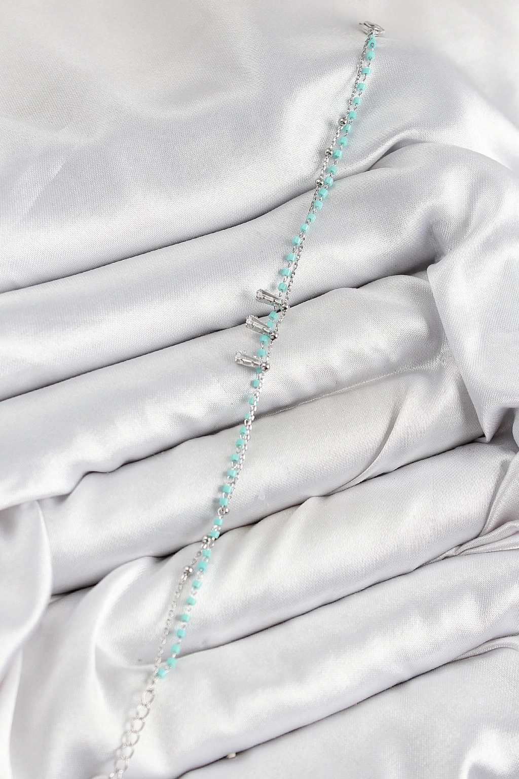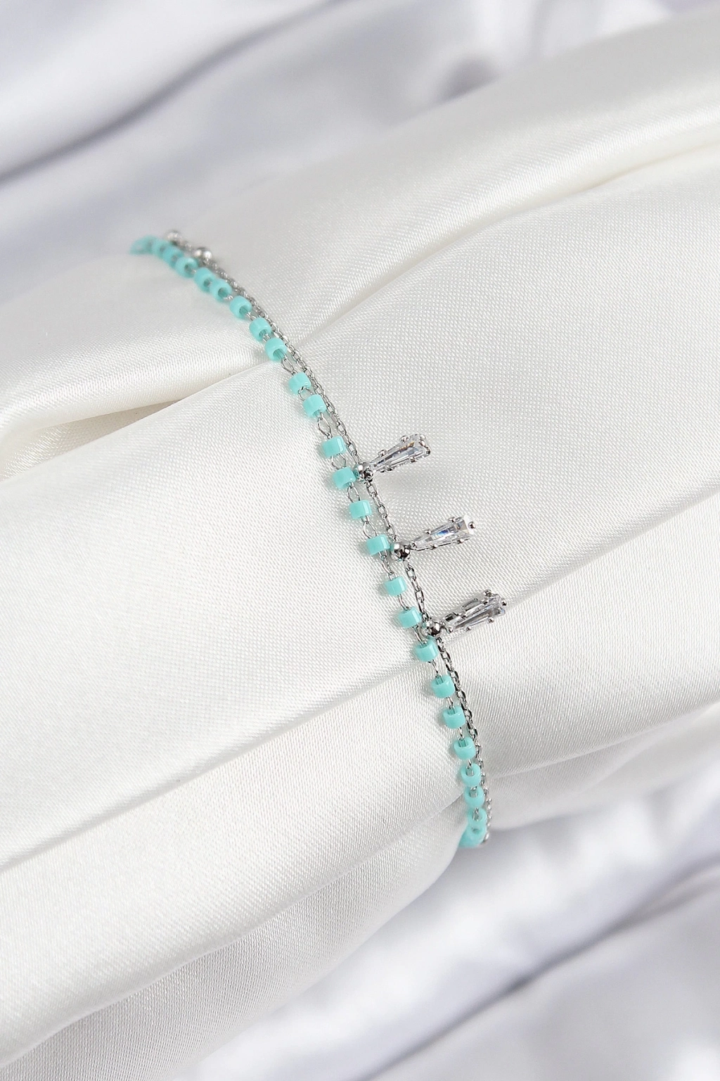 ® Pirinç Zirkon Taşlı Mavi Boncuklu Model Gümüş Renk Kadın Bileklik