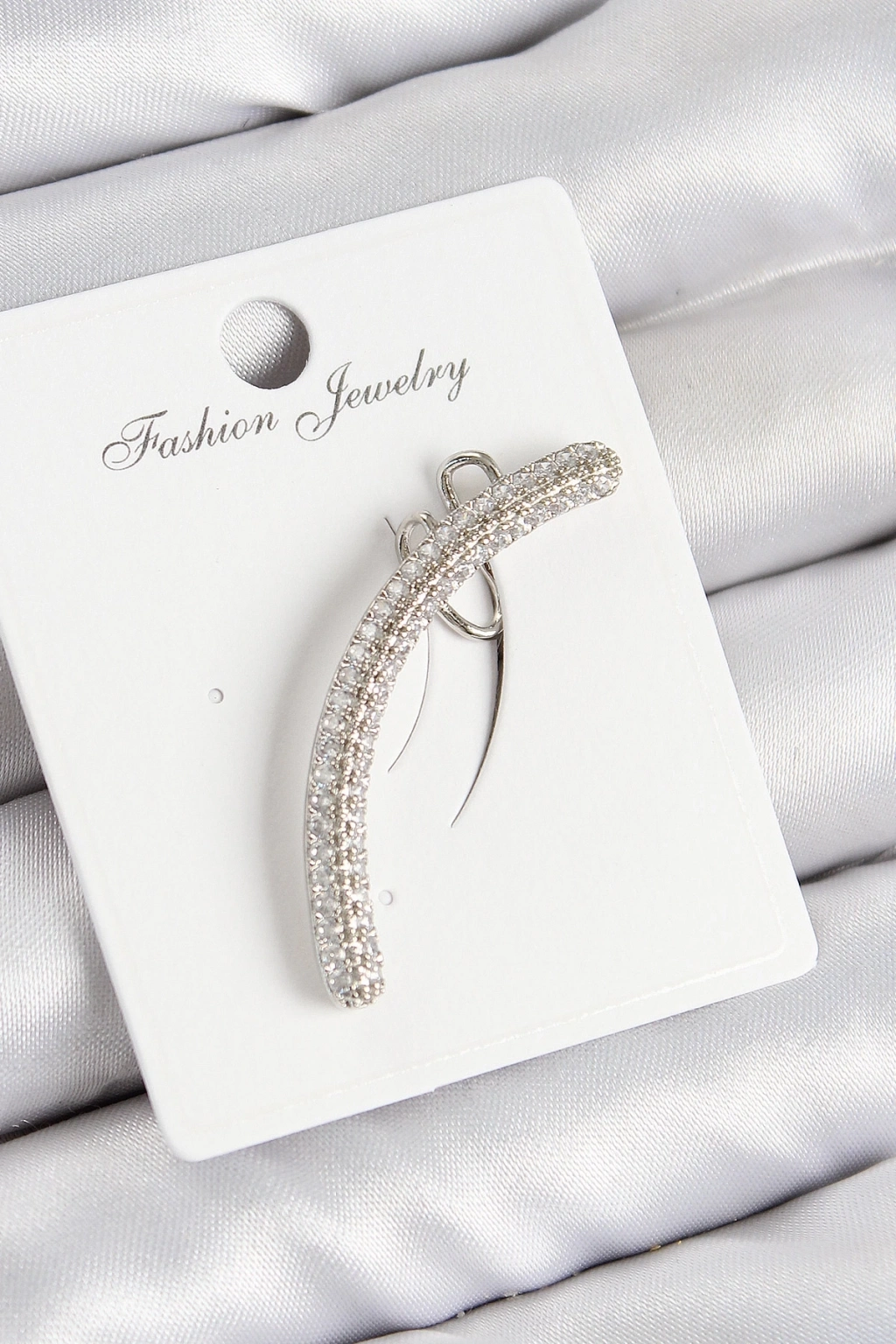 ® Pirinç Zirkon Taşlı Model Gümüş Renk Sağ Kıkırdak Küpe