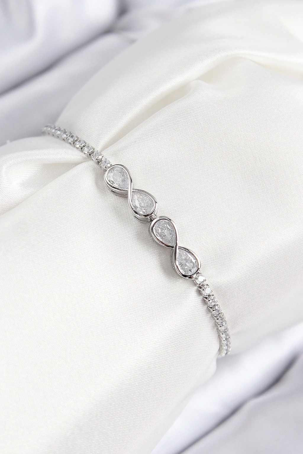 ® Pirinç Zirkon Taşlı Sonsuzluk Model Gümüş Renk Asansörlü Kadın Bileklik