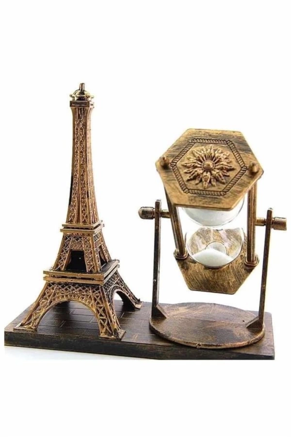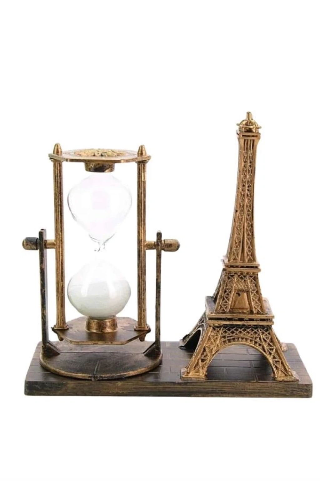 ® Retro Eyfel Kulesi Ve Kum Saati Dekoratif Ahşap Görünümlü Masa Biblosu