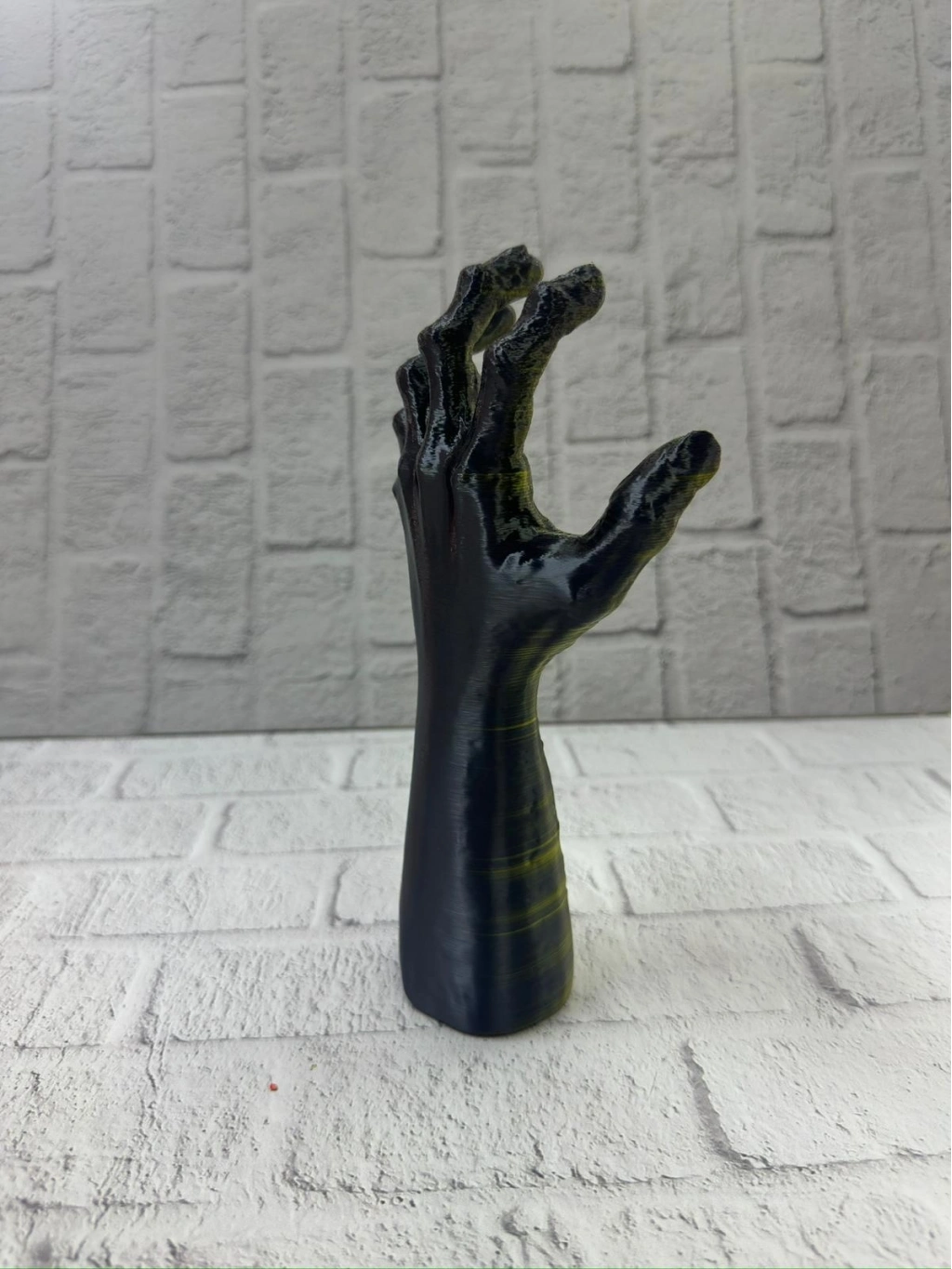 Bu fantastik tasarımlı el heykeli, 22×7 cm boyutlarıyla hem kompakt hem de etkileyici bir dekoratif figür olarak öne çıkar. Ürünün yüzeyindeki damar detayları, parmak kıvrımları ve doğal dokular, heykelin 3 boyutlu etkisini artırır. Özel renk geçişlerine sahip altın–yeşil yüzeyi, ürüne hem modern hem de mistik bir görünüm kazandırmaktadır.El figürü; şans, enerji, yeni başlangıçlar ve yaratıcı güç anlamını taşır. Bu nedenle çalışma masasına, ofis köşesine veya kitaplık rafına yerleştirildiğinde güçlü bir sembolik etki oluşturur. Ürün özellikle fantastik dekor, gotik tarz, modern minimalizm veya konsept tasarım sevenler için ideal bir objedir.Dayanıklı yapısı, uzun süre şekil değiştirmeden kullanılmasına olanak sağlar. Gösterişli görünümü sayesinde hem erkek hem kadın dekor tutkunlarına hediye olarak tercih edilebilir. Koleksiyoncular, sanat severler, fantastik film ve oyun temalı dekorasyon yapanlar için eşsiz bir tamamlayıcı parçadır.