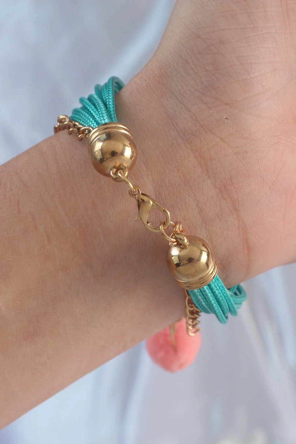 ® Turkuaz Renk Kar Tanesi Figür Zincir Detay İpli Çoklu Bileklik