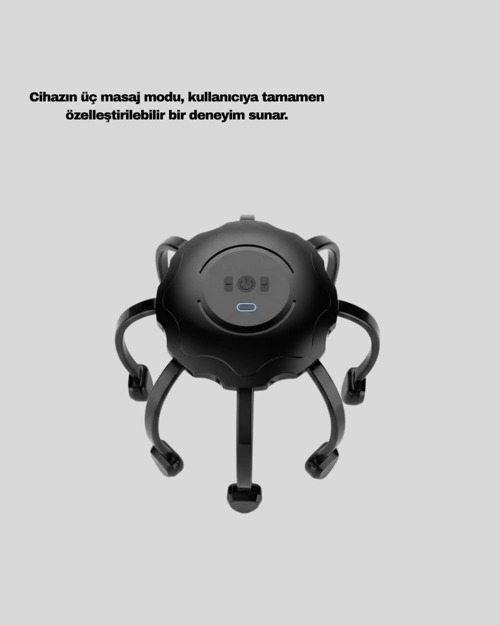 Elektrikli saç derisi masaj aleti, gün içinde biriken zihinsel ve fiziksel yorgunluğu azaltmaya yardımcı olmak amacıyla geliştirilmiş pratik bir rahatlama ürünüdür. Çok noktalı 8 kollu masaj sistemi, saç derisinin tamamına eşit temas ederek konforlu ve dengeli bir masaj hissi sunar. Esnek masaj kolları baş yapısına uyum sağlayarak her kullanımda homojen bir deneyim oluşturur.Cihazın titreşimli yapısı, saç derisinde ferahlık hissi yaratırken rahatlamayı destekler. Üç farklı masaj modu sayesinde kullanıcılar ihtiyacına göre masaj yoğunluğunu kolayca ayarlayabilir. Hafif mod, sakinleşme ve gevşeme odaklı bir kullanım sunar. Orta mod, gün boyunca oluşan gerginliğin azalmasına yardımcı olur. Yoğun mod ise daha belirgin titreşimlerle güçlü bir masaj hissi sağlar.USB şarjlı tasarımı sayesinde her ortamda kolay kullanım imkânı sunar. Bilgisayar, powerbank veya adaptör ile şarj edilebilir olması, ürünü günlük yaşamda son derece pratik hale getirir. Sessiz motor teknolojisi, gece saatlerinde dahi rahatsızlık vermeden kullanılmasını mümkün kılar.Hafif ve kompakt yapısı sayesinde evde, ofiste veya seyahatlerde rahatlıkla taşınabilir. Düzenli kullanımda saç derisinde rahatlama hissini artırarak günlük bakım rutinine konforlu bir katkı sağlar. Elektrikli saç derisi masaj aleti, kendine zaman ayırmak isteyen kullanıcılar için etkili ve pratik bir yardımcıdır.