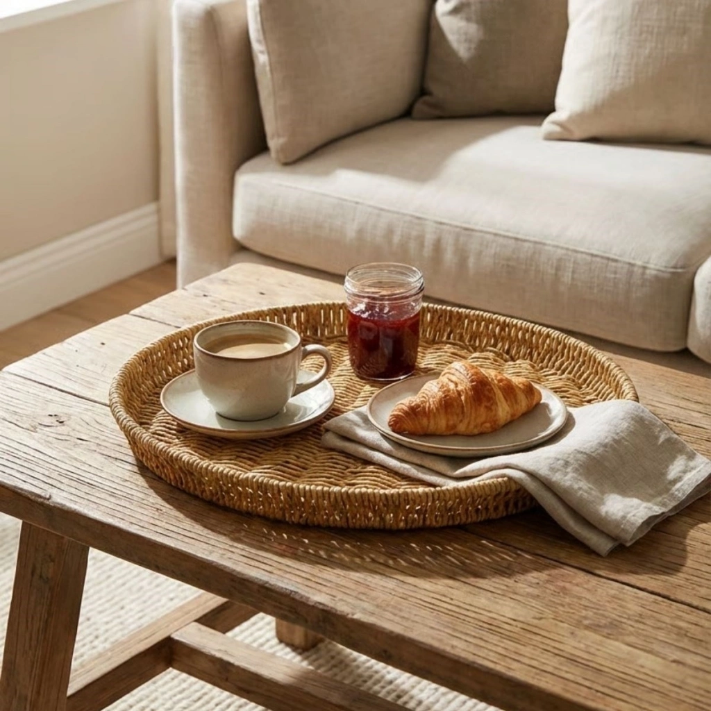 35 cm Plastik Rattan Tepsi; estetik görünümü ve fonksiyonel yapısıyla ev, ofis ve ticari alanlarda sunumlarınıza düzen ve zarafet kazandırır.