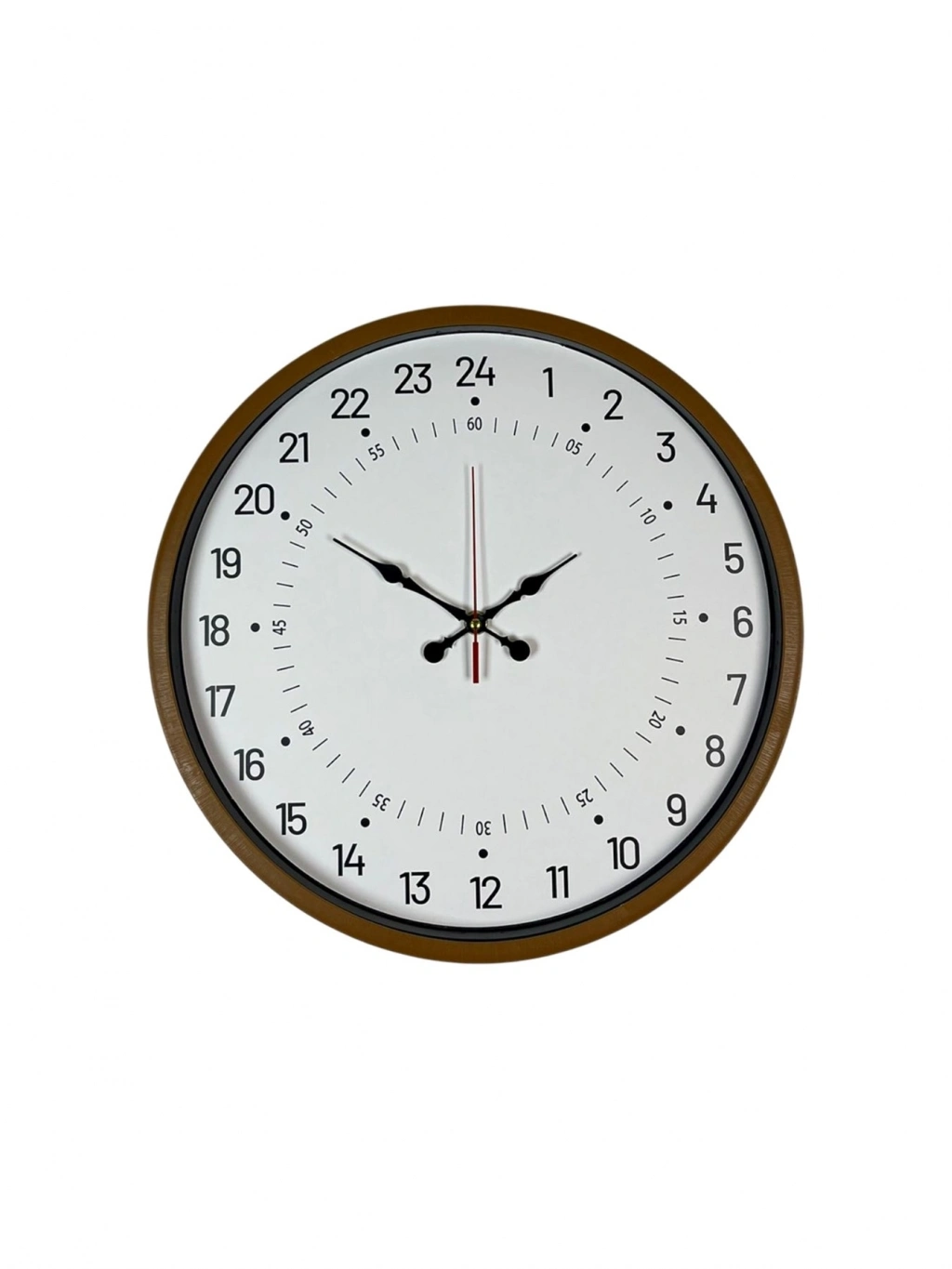 Bu özel tasarım duvar saati, klasik 12 saatlik saatlerden farklı olarak 24 saatlik zaman sistemine sahiptir. Kadran üzerinde yer alan 1–24 arası rakamlar sayesinde günün tamamı tek bir turda okunur. Bu özelliğiyle zamanı daha bilinçli ve net takip etmek isteyenler için sıra dışı ve fonksiyonel bir kullanım sunar.