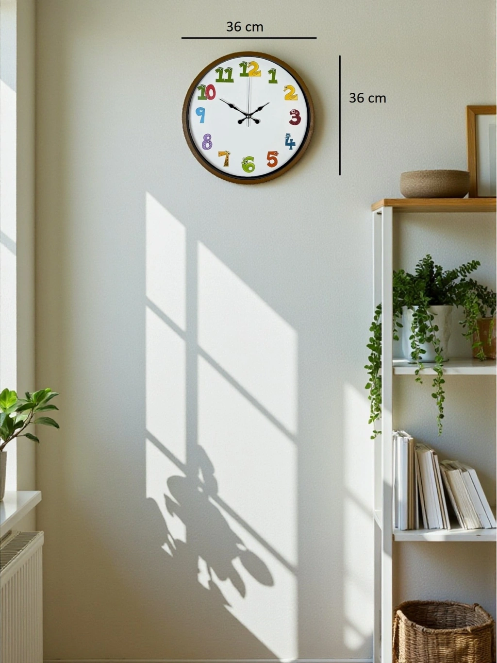 Renkli ve eğlenceli rakam tasarımlarıyla çocuk odalarına neşe katan bu 36 cm duvar saati, sessiz çalışması ve canlı görünümüyle hem dekoratif hem öğretici bir üründür. Çocukların saat öğrenmesini kolaylaştıran sevimli rakam karakterleri ile odalara enerji katar.