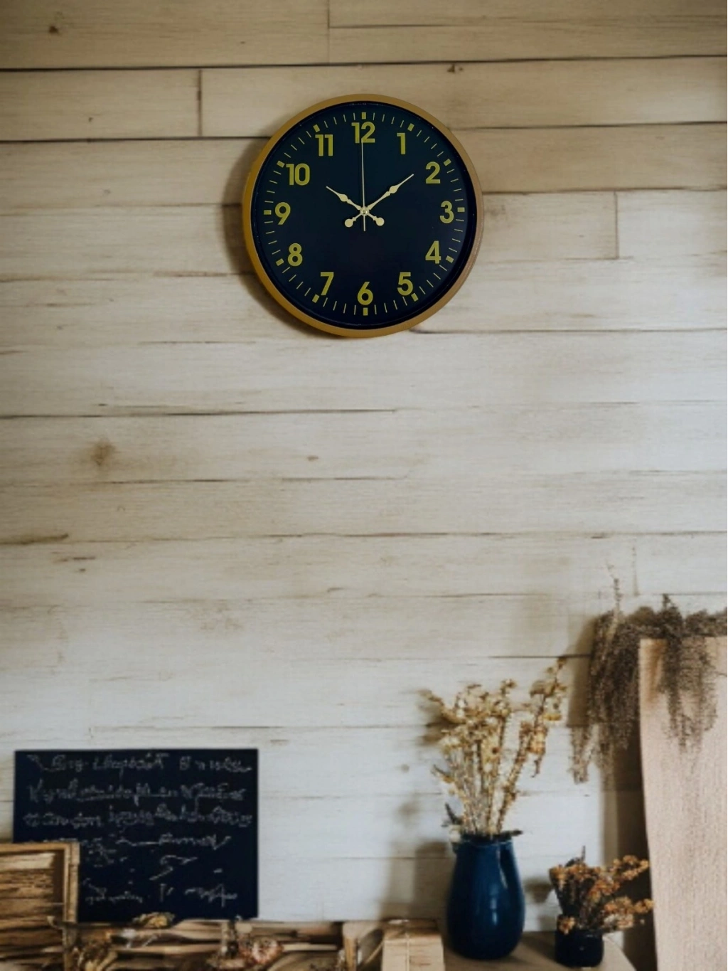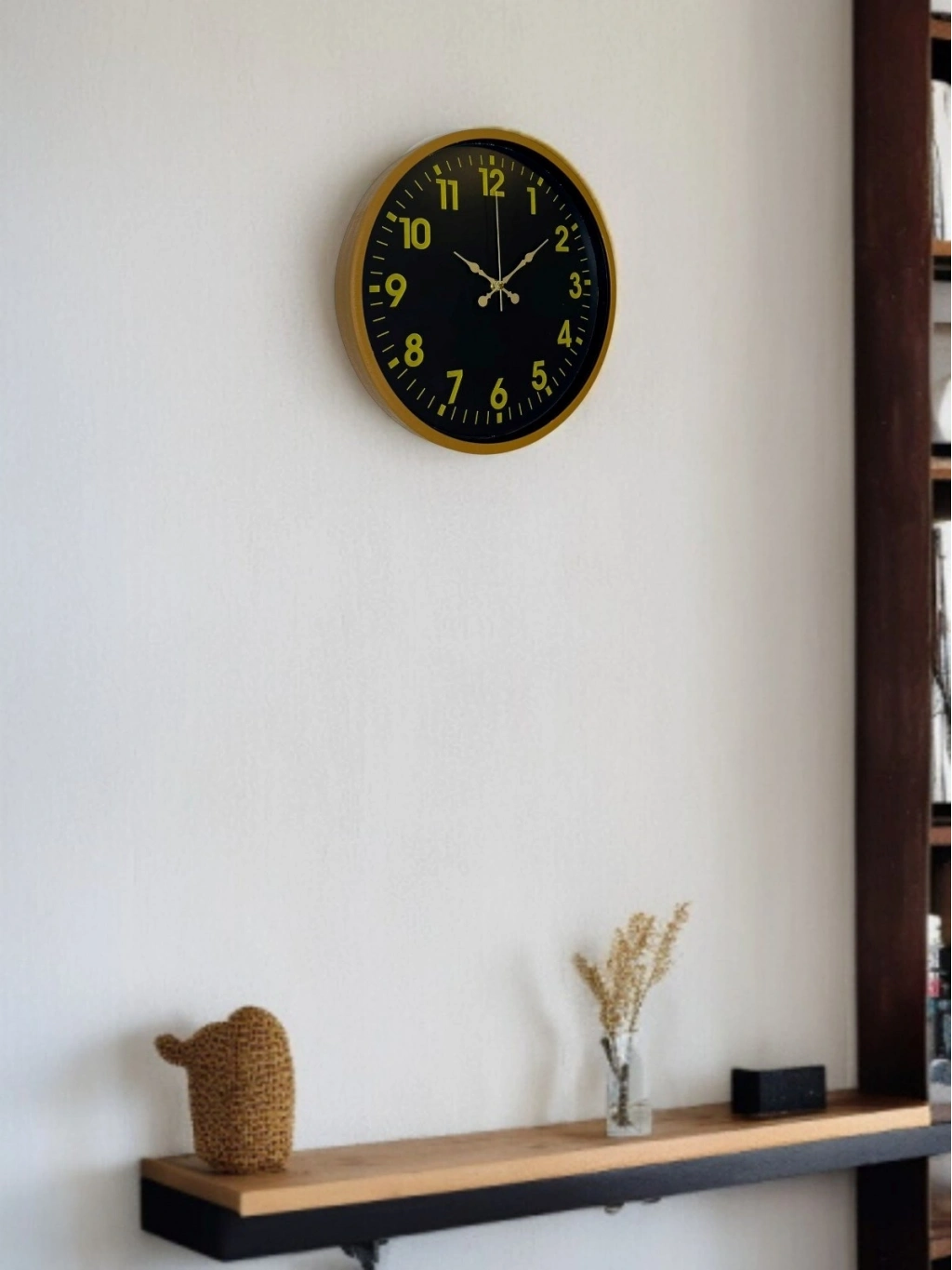 Kahverengi çerçevesi, siyah kadranı ve gold tonlu rakamlarıyla tasarlanan bu 36 cm duvar saati; bulunduğu ortama sıcak, şık ve zamansız bir hava katar. Büyük ve net rakamları sayesinde uzaktan dahi kolayca okunur, günlük kullanımda pratiklik sağlar.